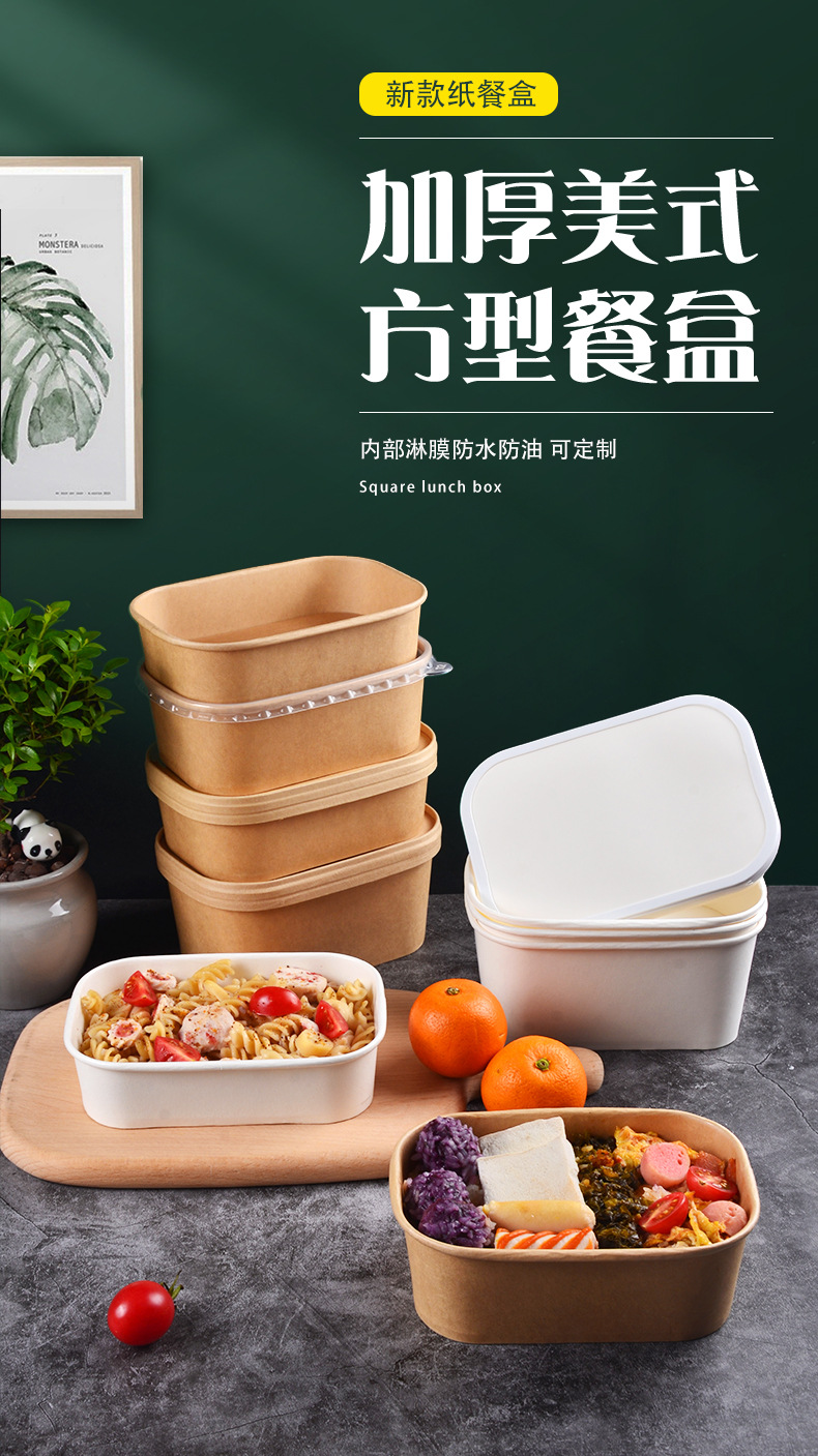 卸売使い捨て弁当箱、カスタマイズ可能な正方形の紙ボウル、フィットネスミールテイクアウト包装箱、食品包装ファーストフードボックス