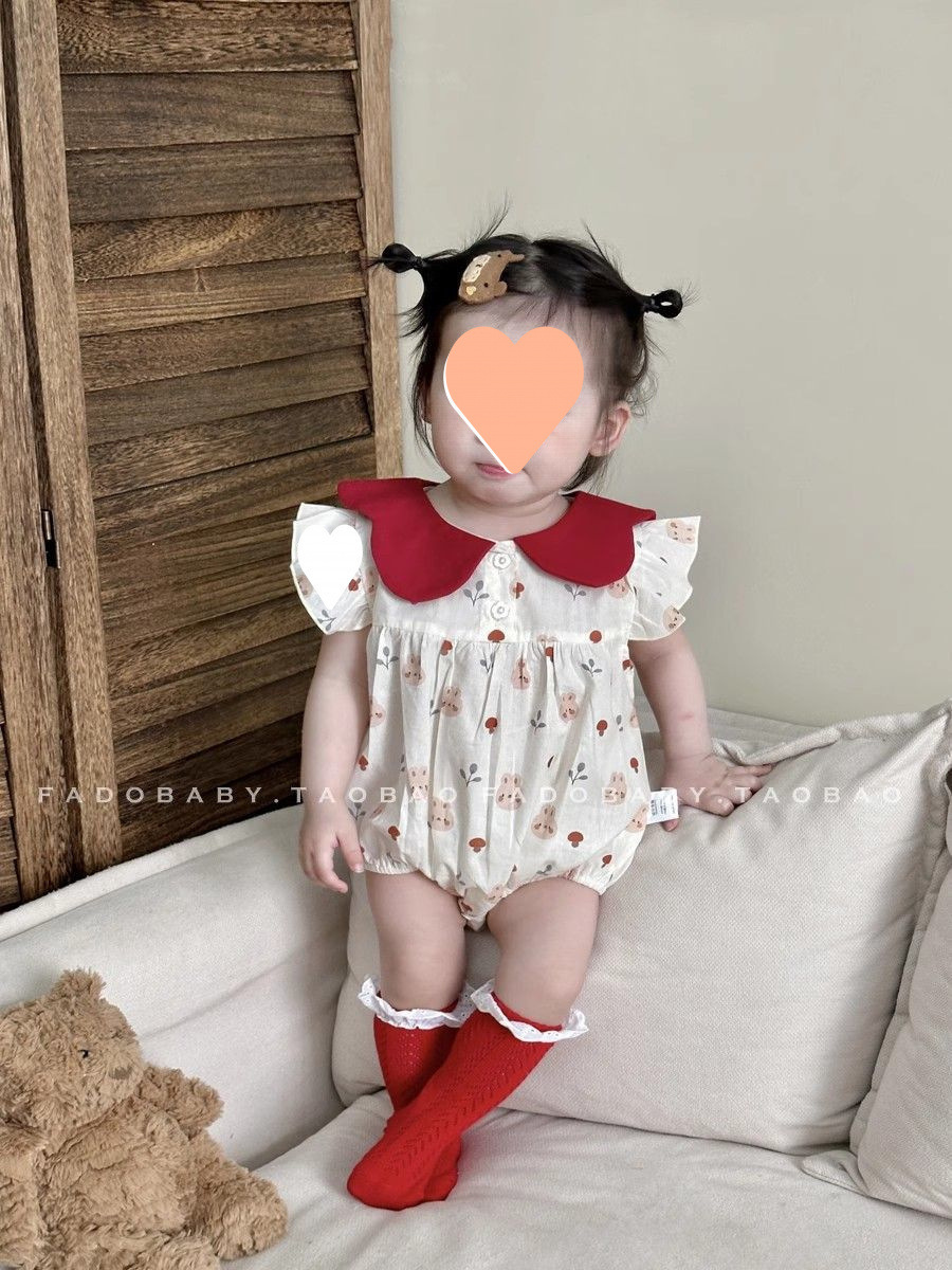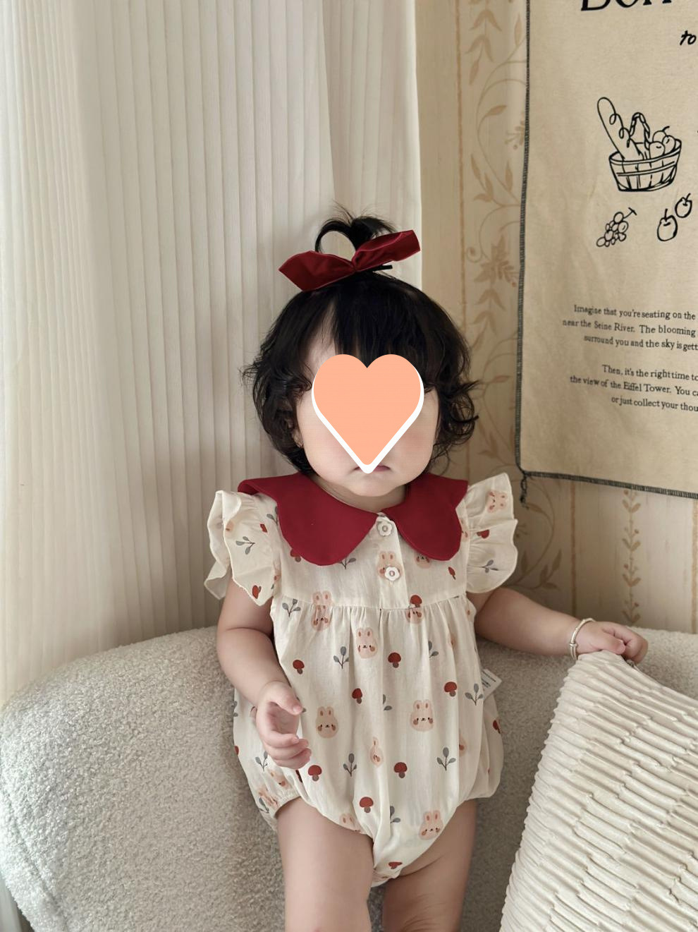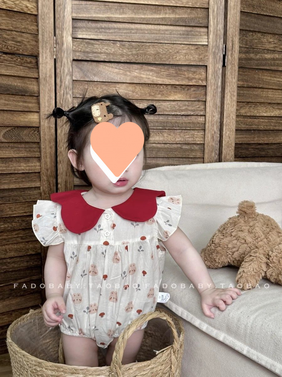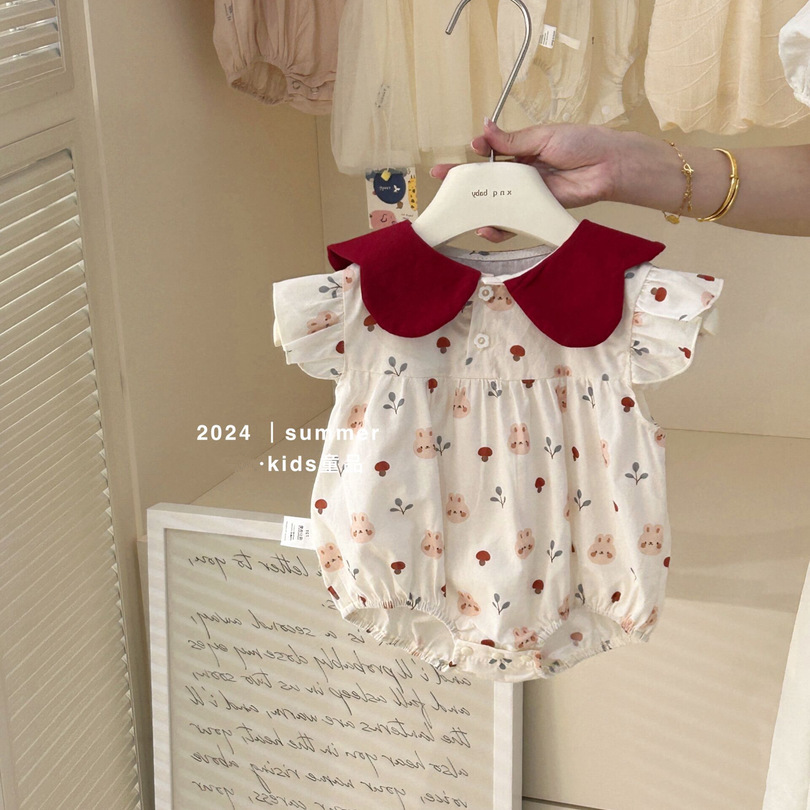 ベビー服、夏用ベビードール襟、薄手でかわいいウサギ
