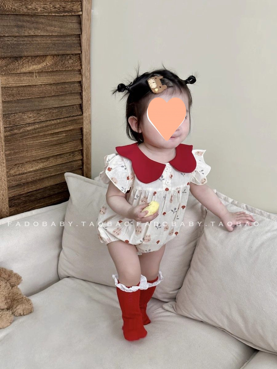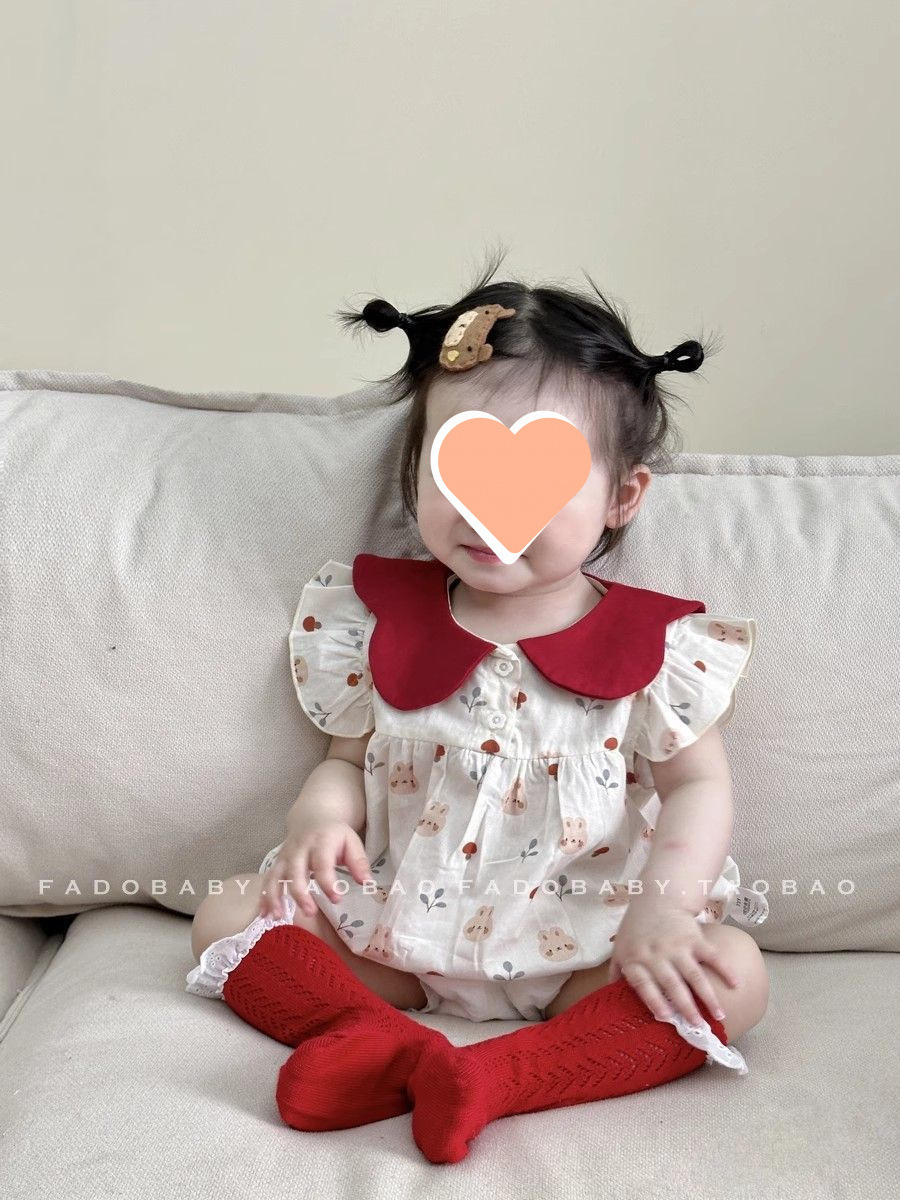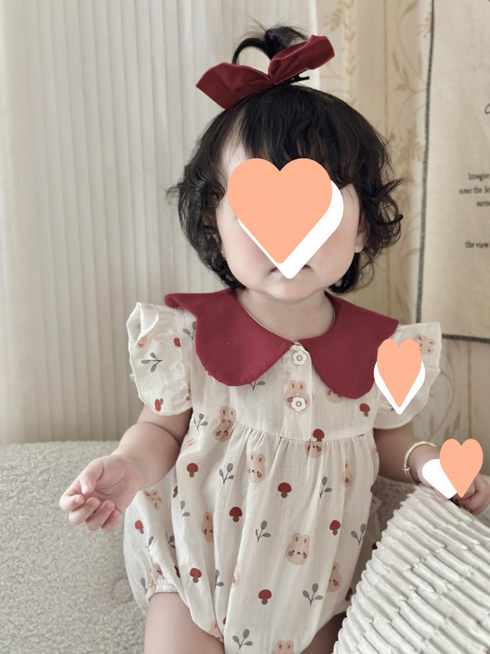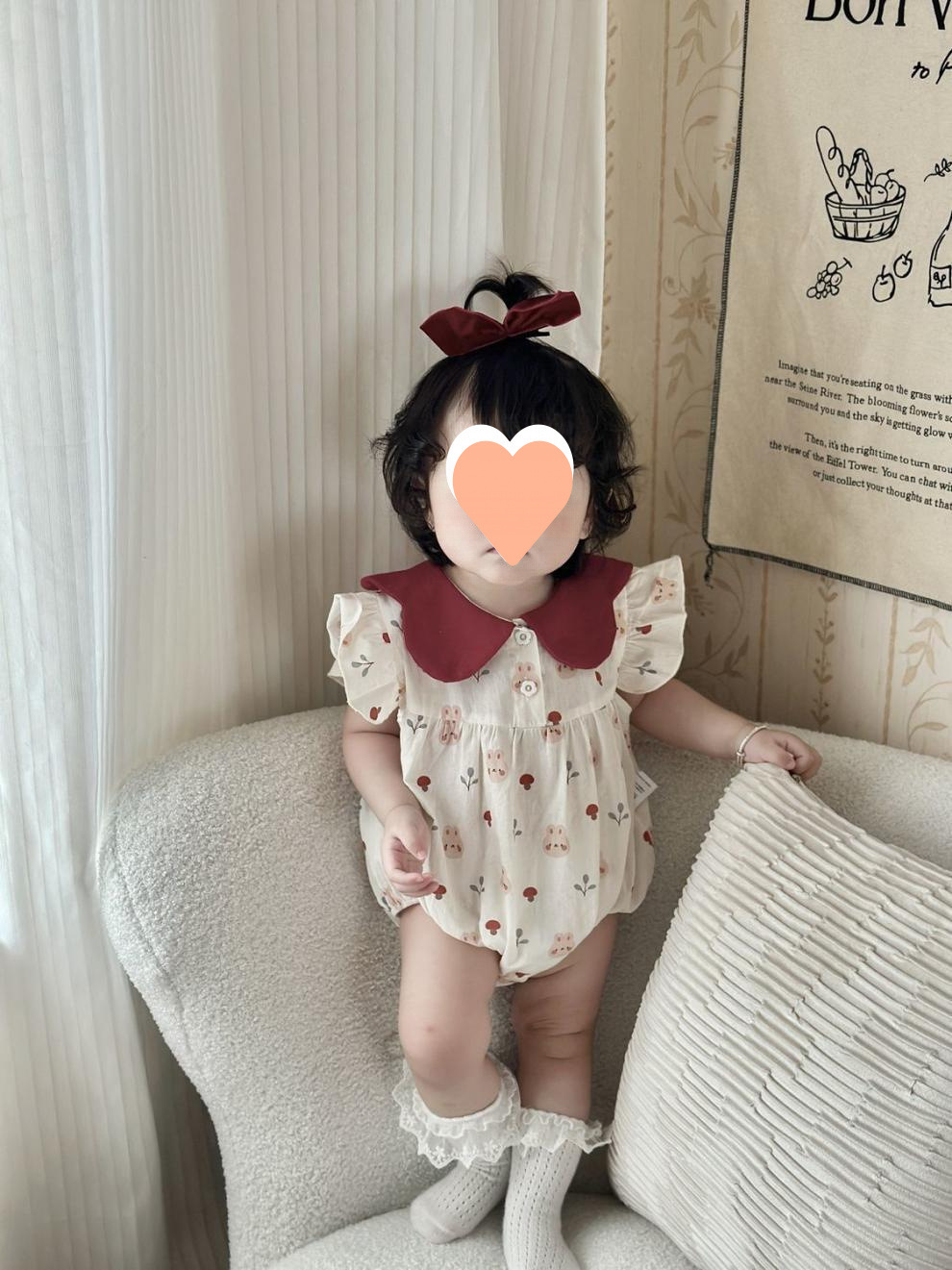 ベビー服、夏用ベビードール襟、薄手でかわいいウサギ