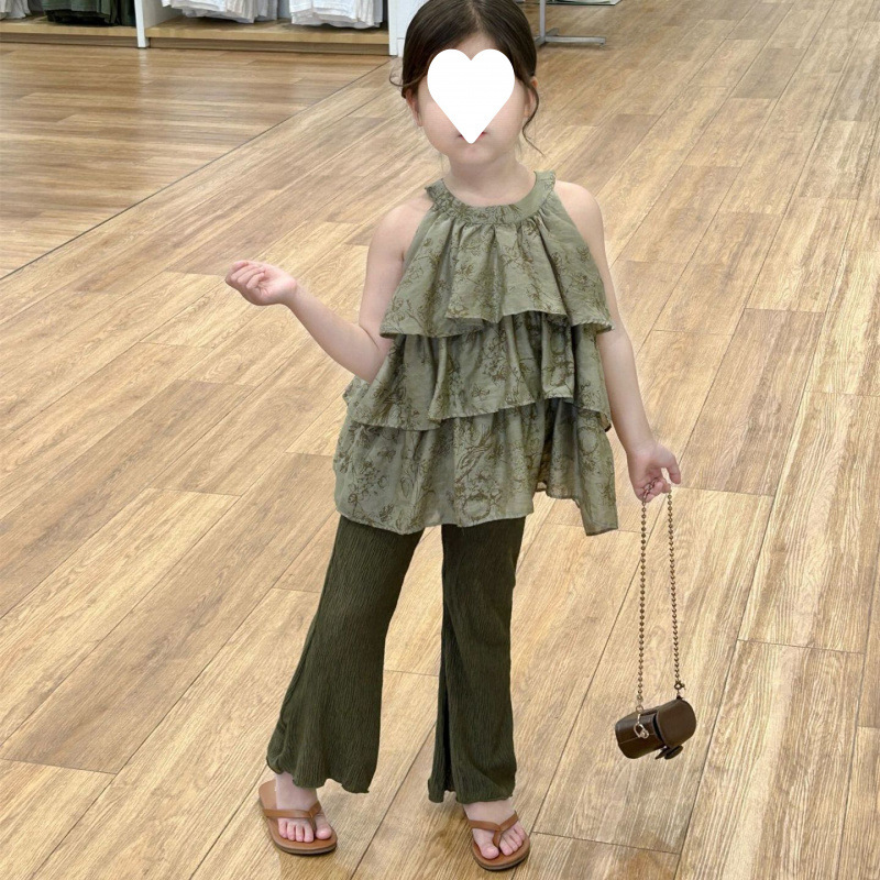 女の子のケーキスカートキャミソールサマードレス子供の甘いホルターネックノースリーブトップフレアパンツスーツシャツパンツ