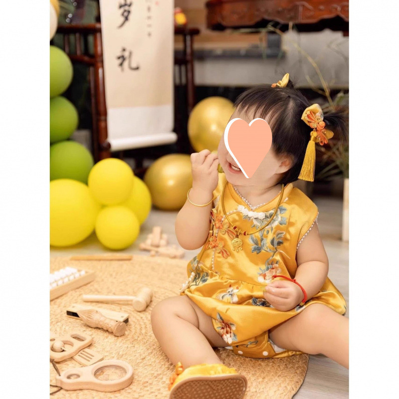 1歳の女の赤ちゃんドレス中国風チャイナドレスゴールデン100日ベビーワンピースハイエンド唐装クラウン服春と夏