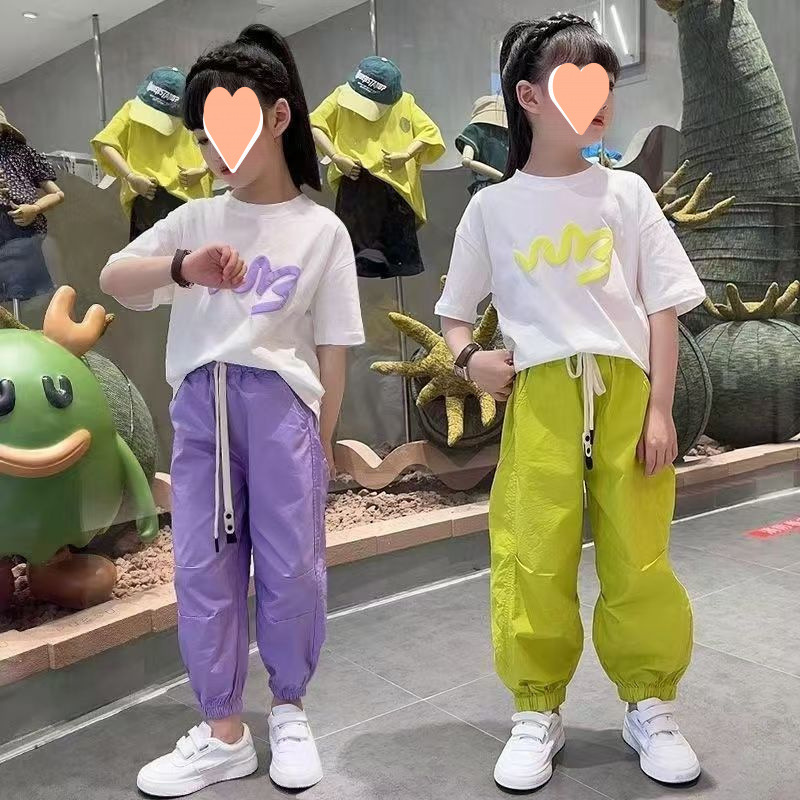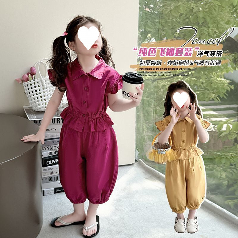 女の子スーツ夏 2025 新しい子供半袖ミッドパンツベビーファッショナブルな薄い綿の夏服カジュアルでファッショナブルな