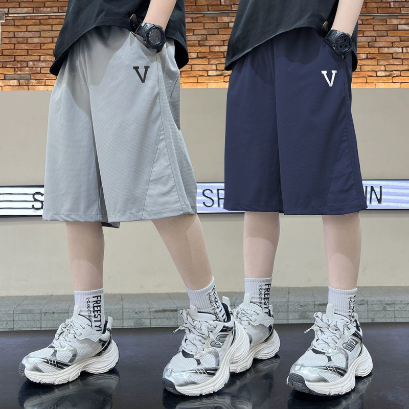 子供パンツ、男の子速乾ショーツ、通気性アイスシルクパンツ、男の子スポーツパンツ、大きい子供夏服、夏薄手スタイル