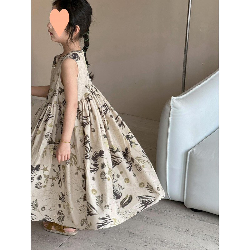女の子ドレスベビー花柄子供夏薄いノースリーブスカート少女ロングスカート西洋スタイル韓国綿