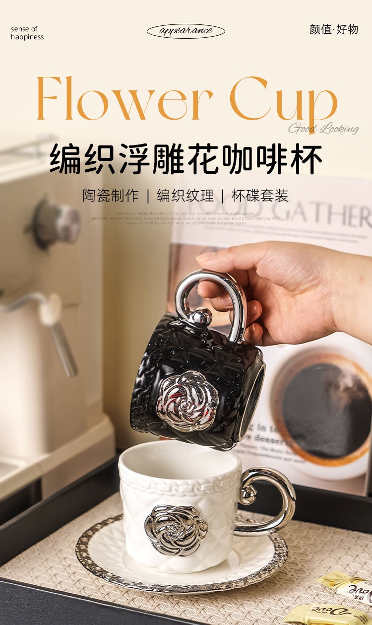 小香链条杯碟-黑色1杯1碟礼盒装 下游限价:39.9
