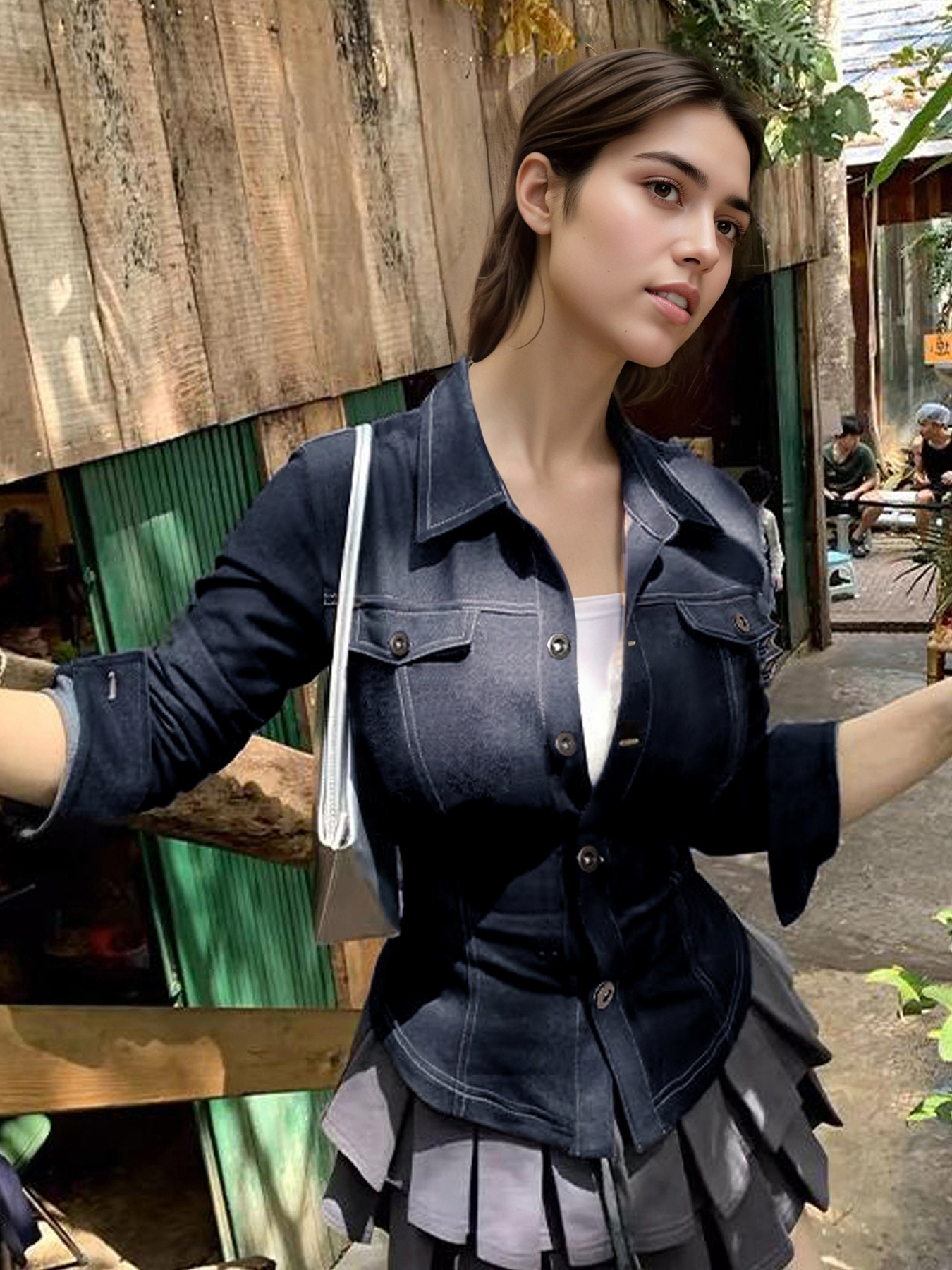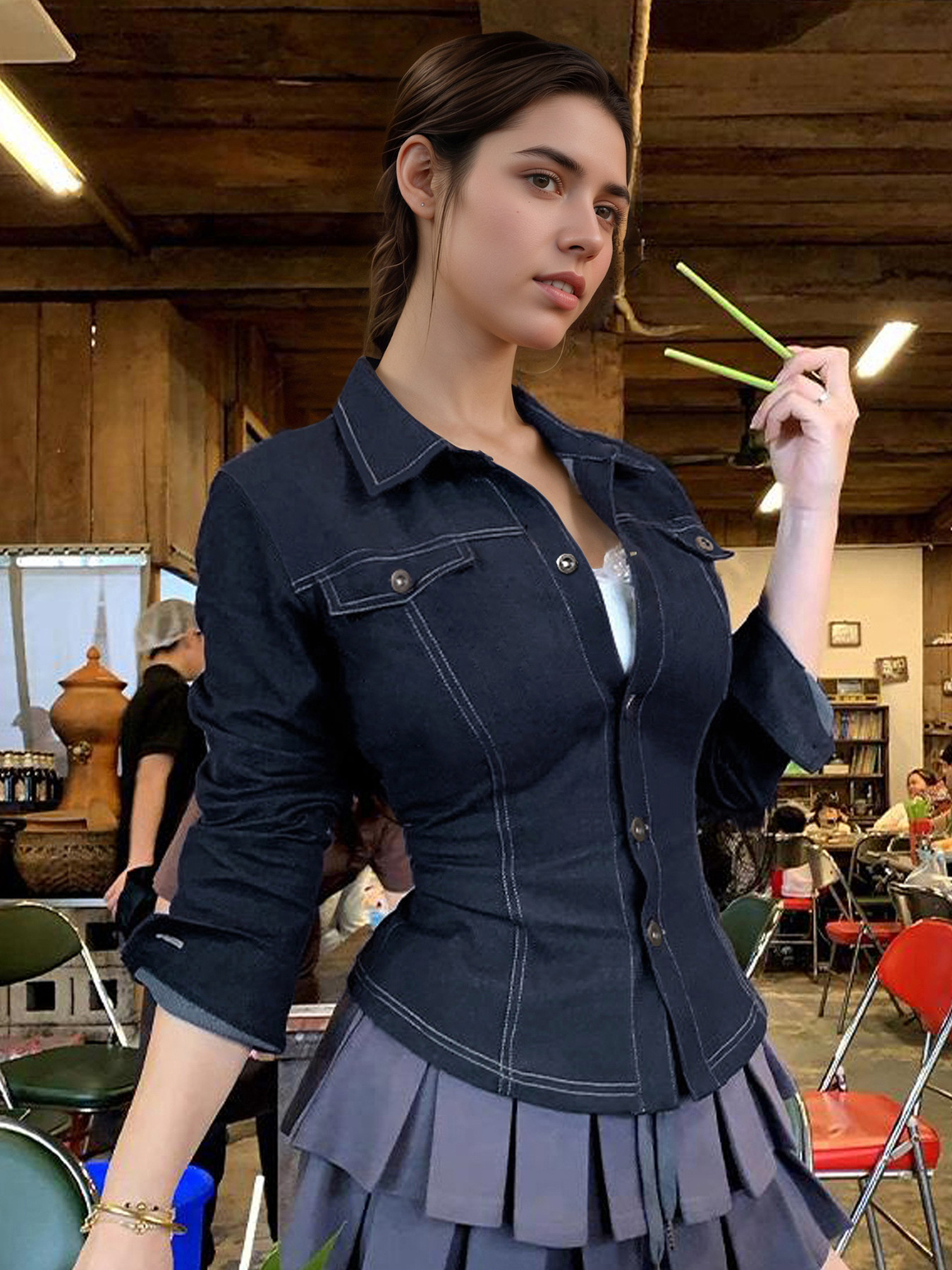 面料:仿牛仔 95%涤纶5%氨纶