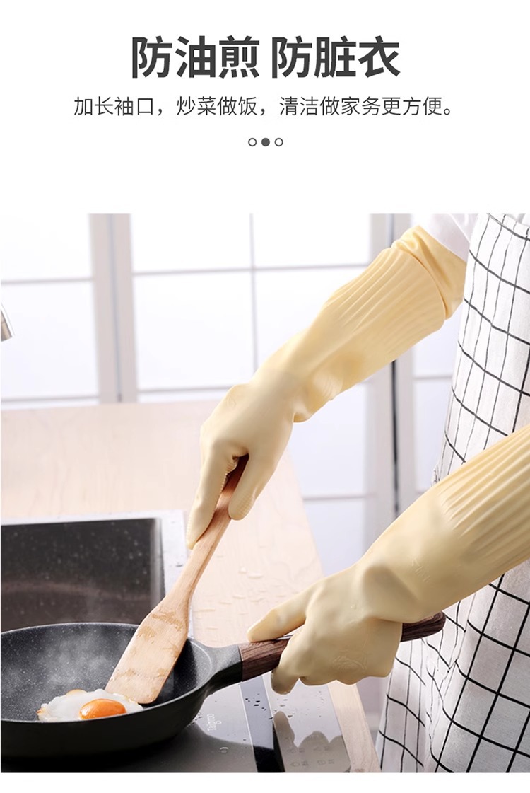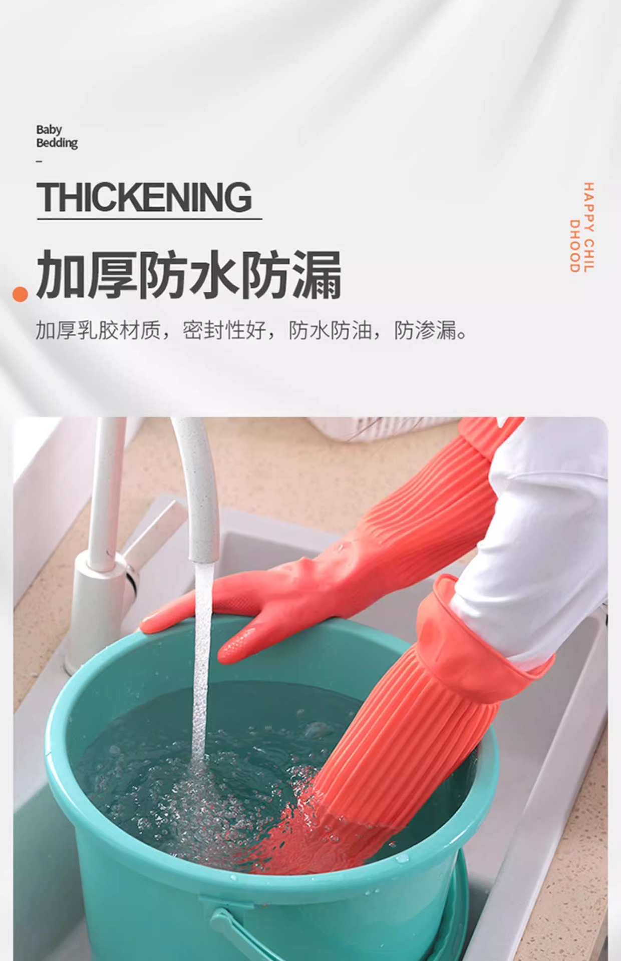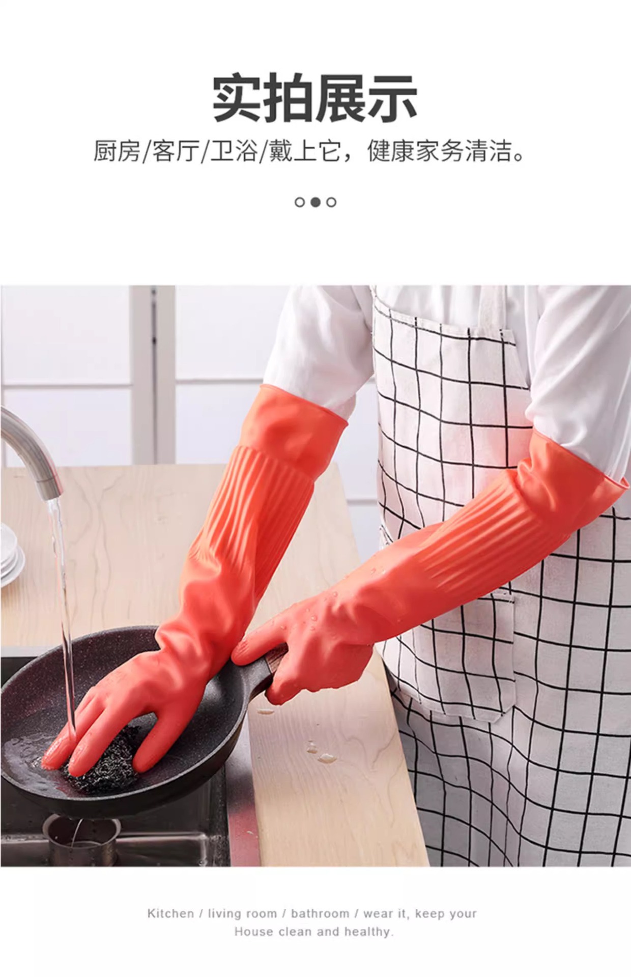 加长冬季加厚加绒家政乳胶手套防油家用厨房清洁打扫长袖橡胶手套