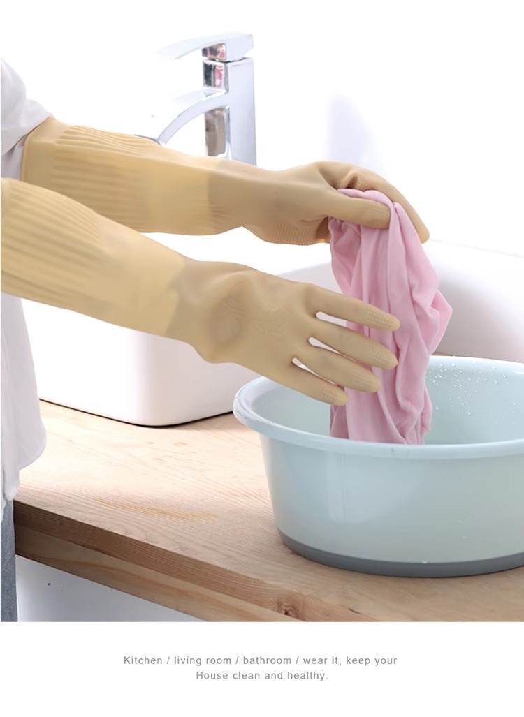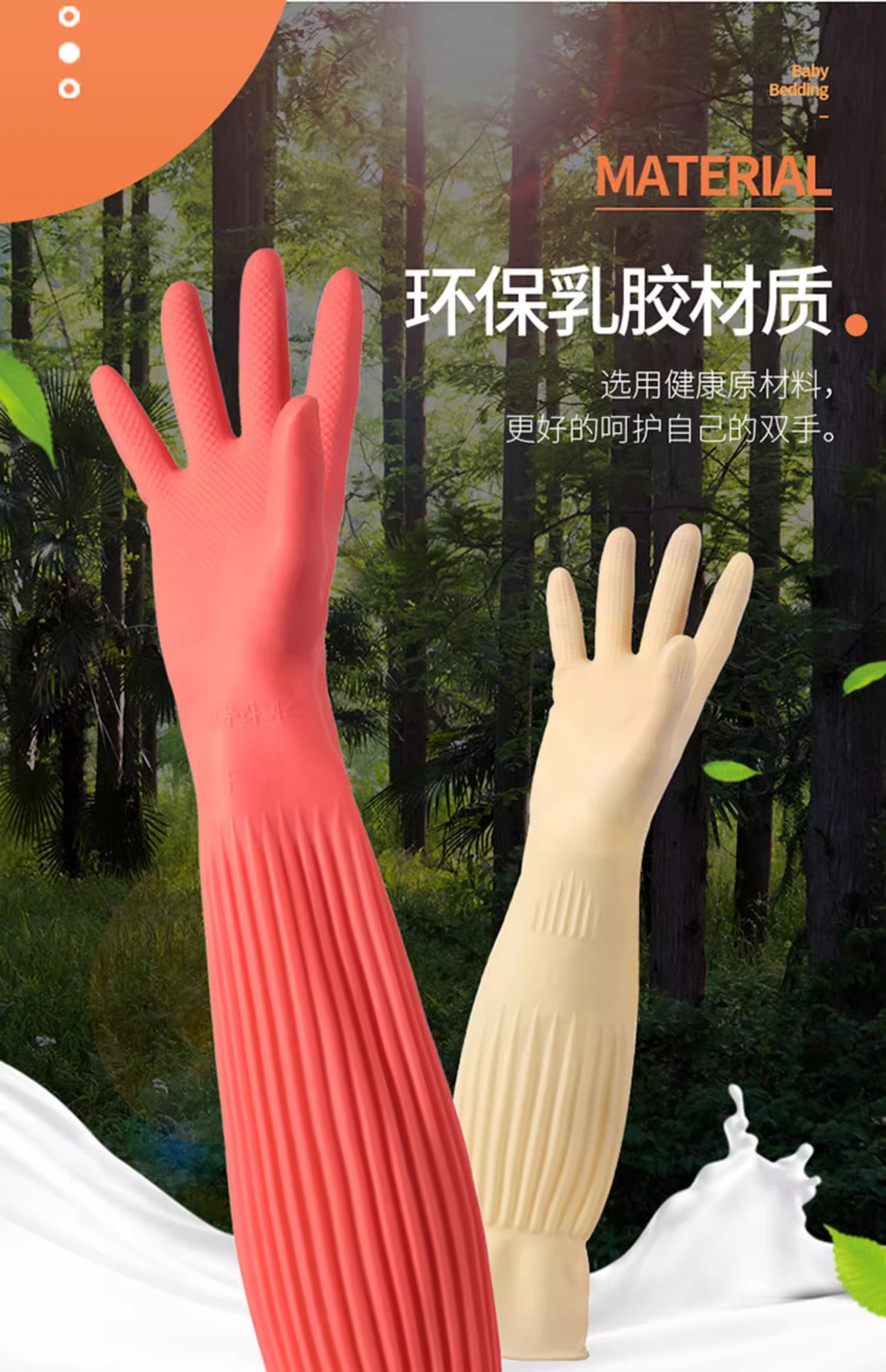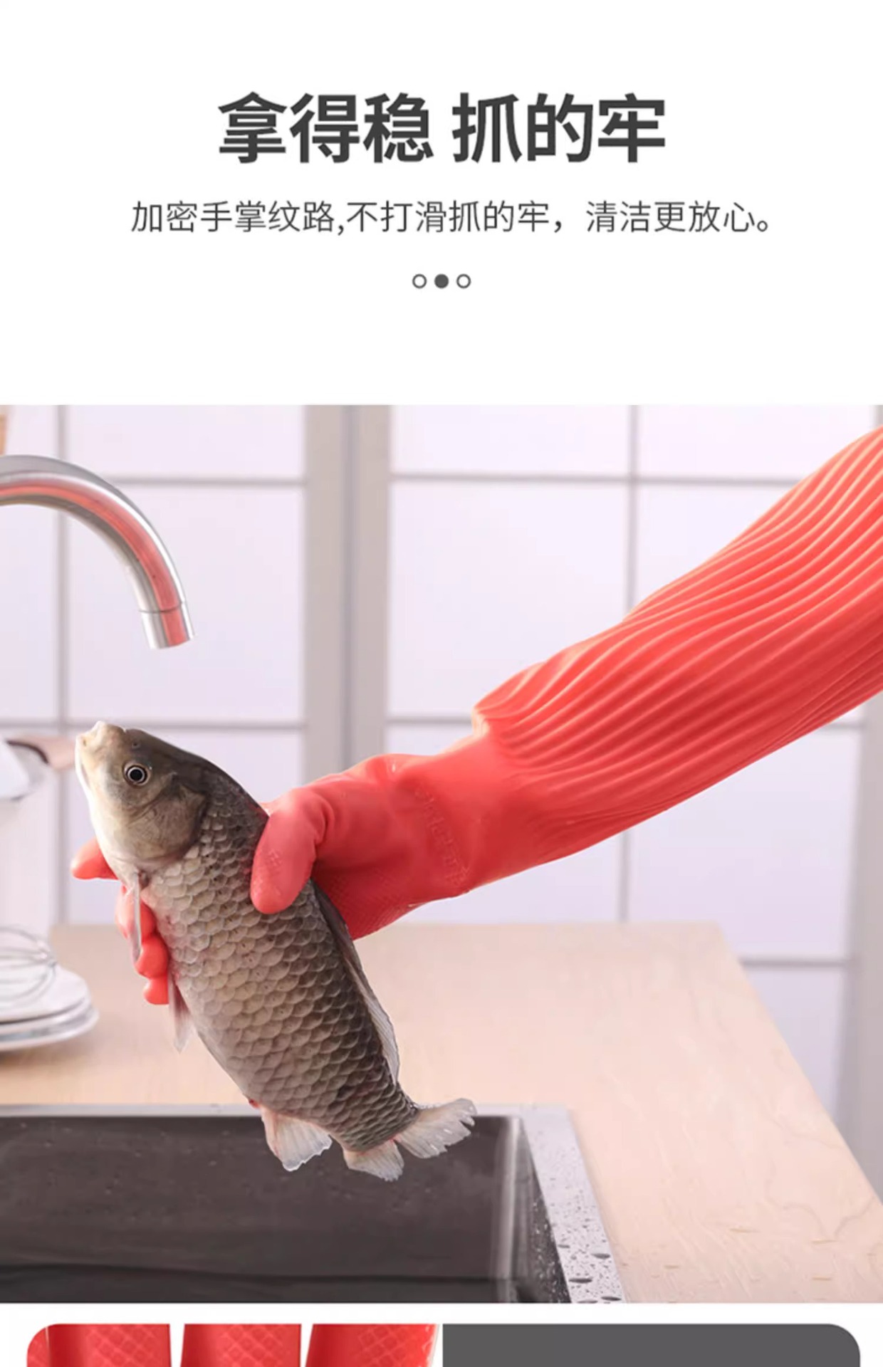 加长冬季加厚加绒家政乳胶手套防油家用厨房清洁打扫长袖橡胶手套