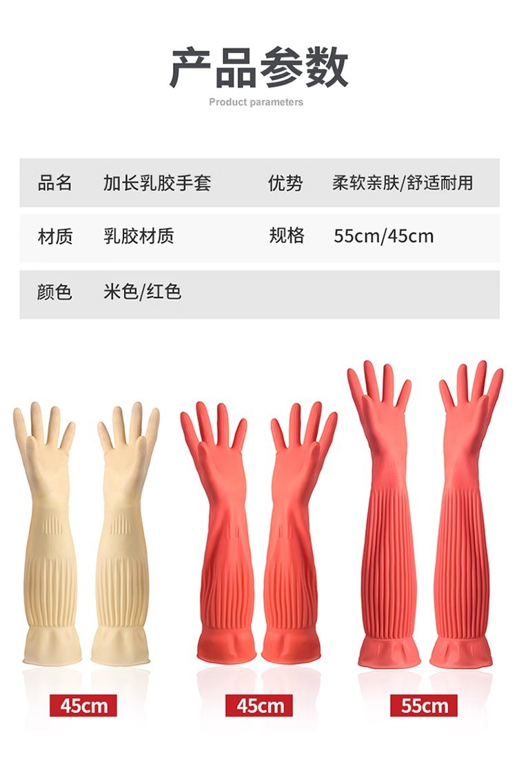 非常に長い食器洗い用手袋、耐久性のある家事用ゴム、厚みのある作業用労働保護、耐摩耗性キッチンロング防水ラテックスゴム