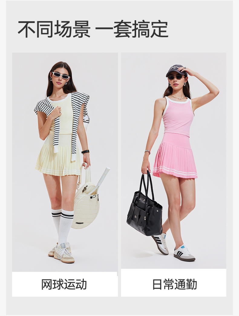 クロスボーダー速乾性スポーツプリーツスカート防走光底通気ポケットヨガショートスカートアウトドアゴルフテニススカート