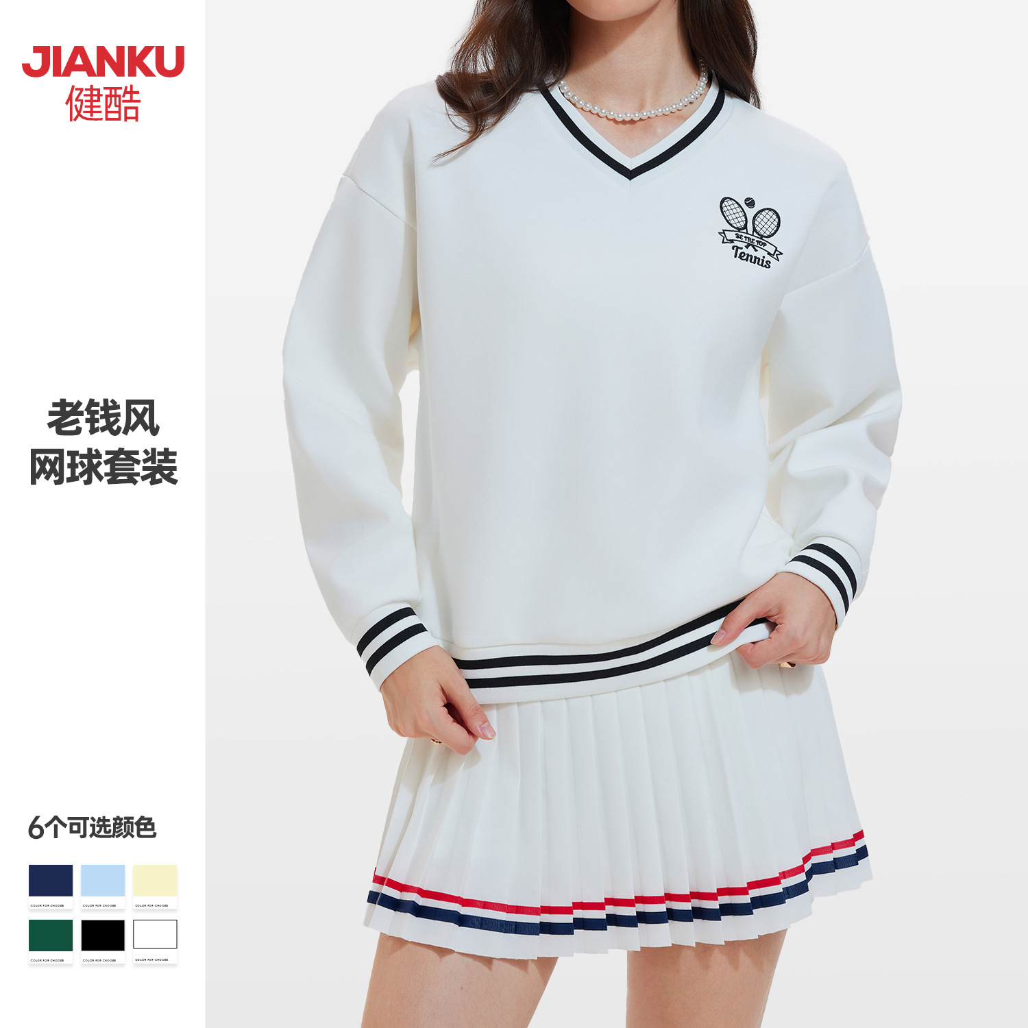 网球套装运动修身显瘦a字百褶短裙女长袖拉链高领T恤网球服两件套