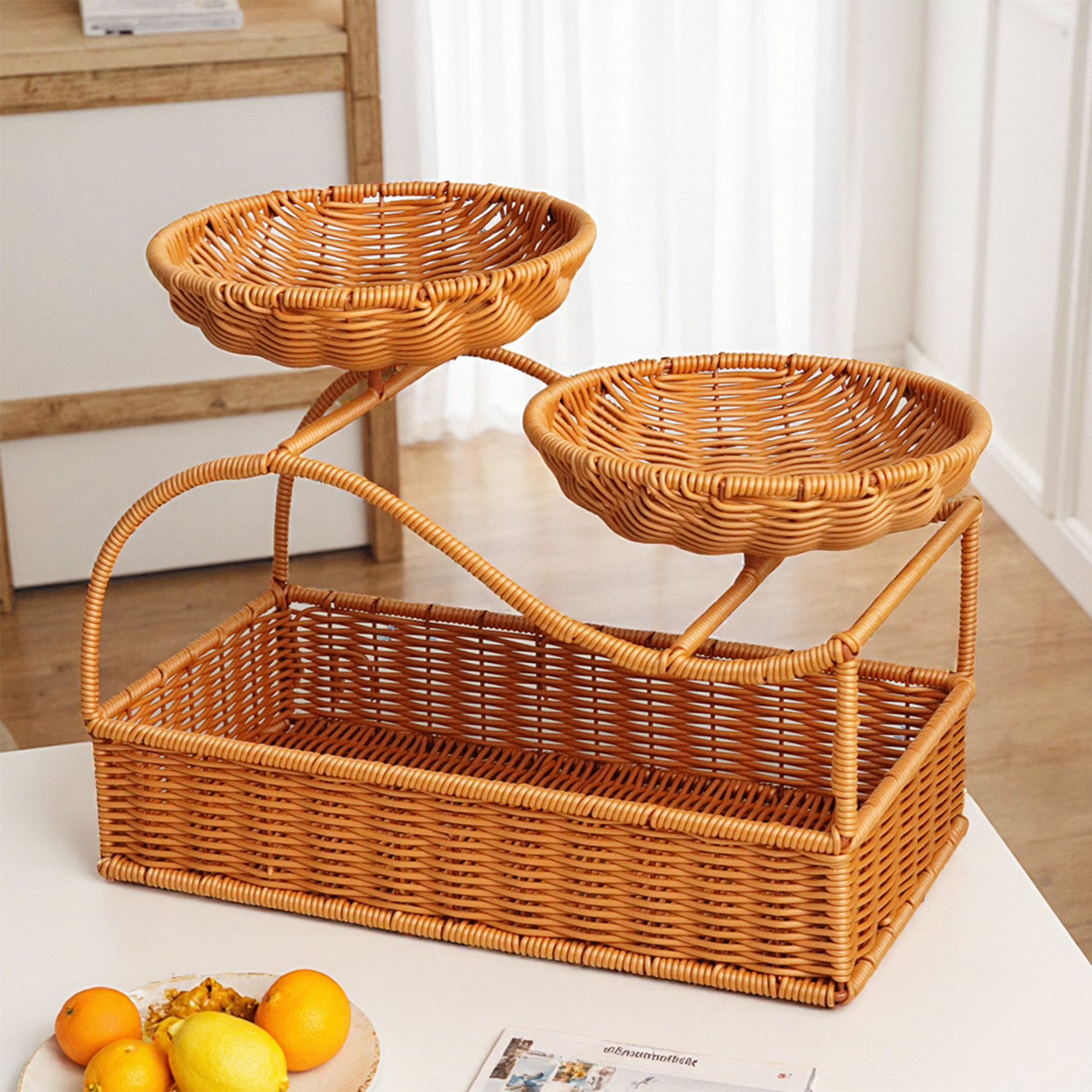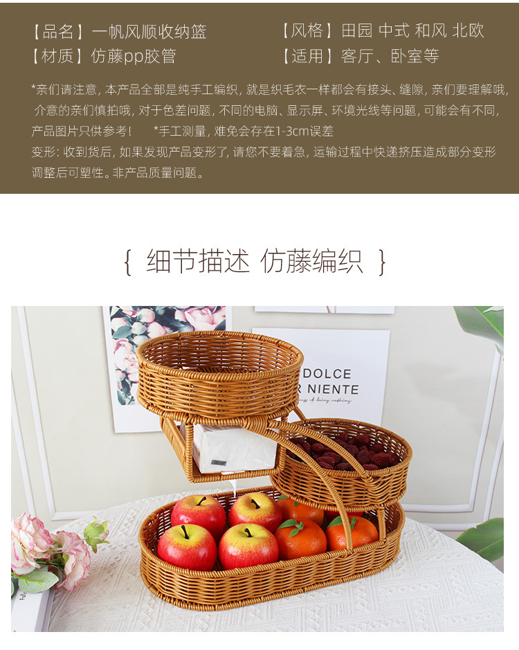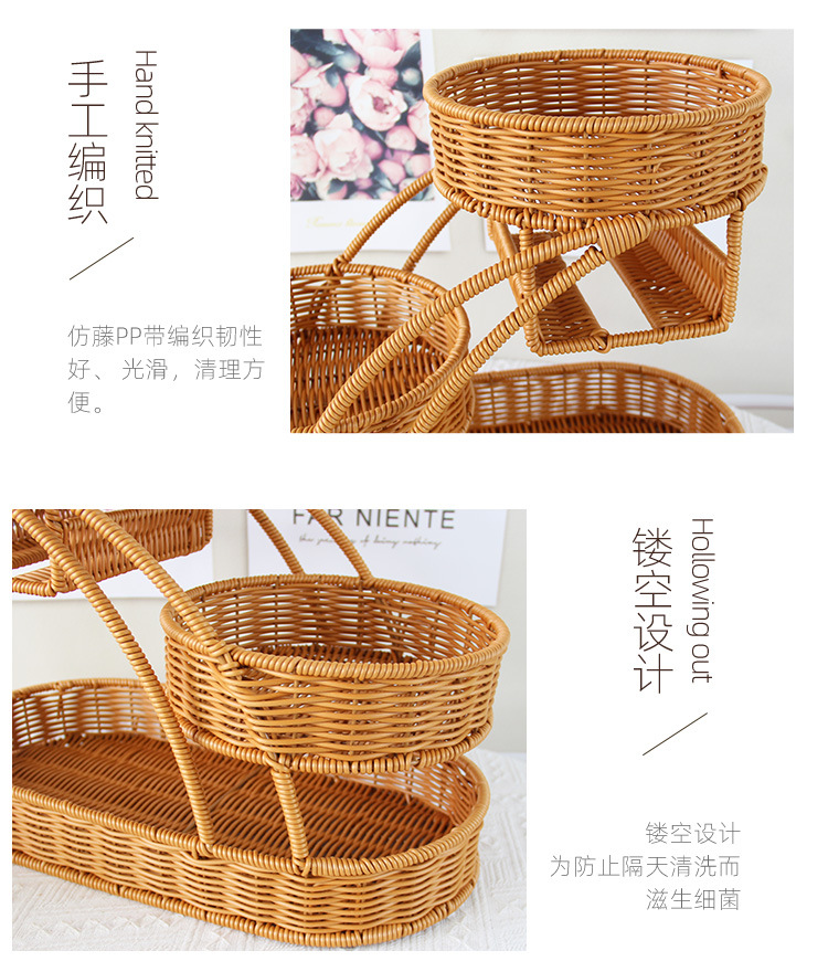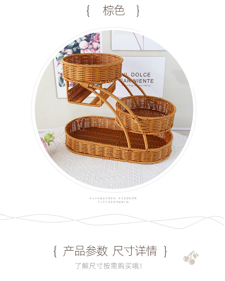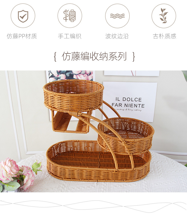 仿藤编织创意水果篮多层点心收纳篮客厅果盘零食干果面包托盘储物