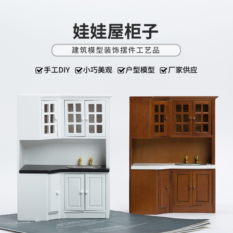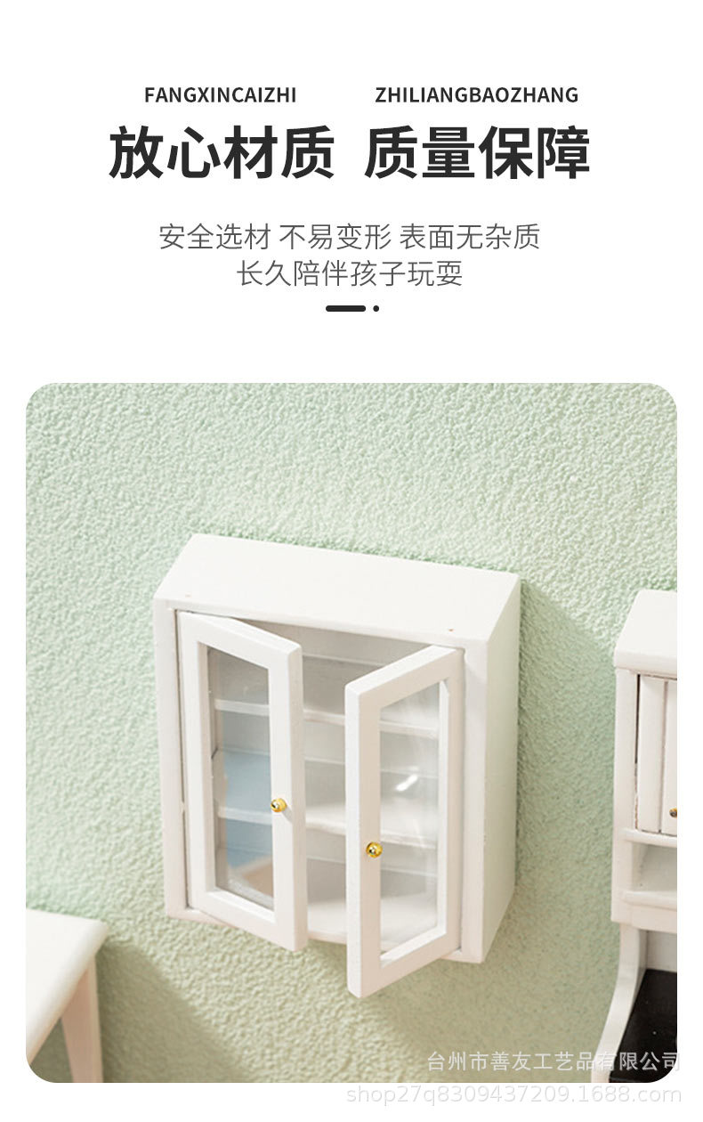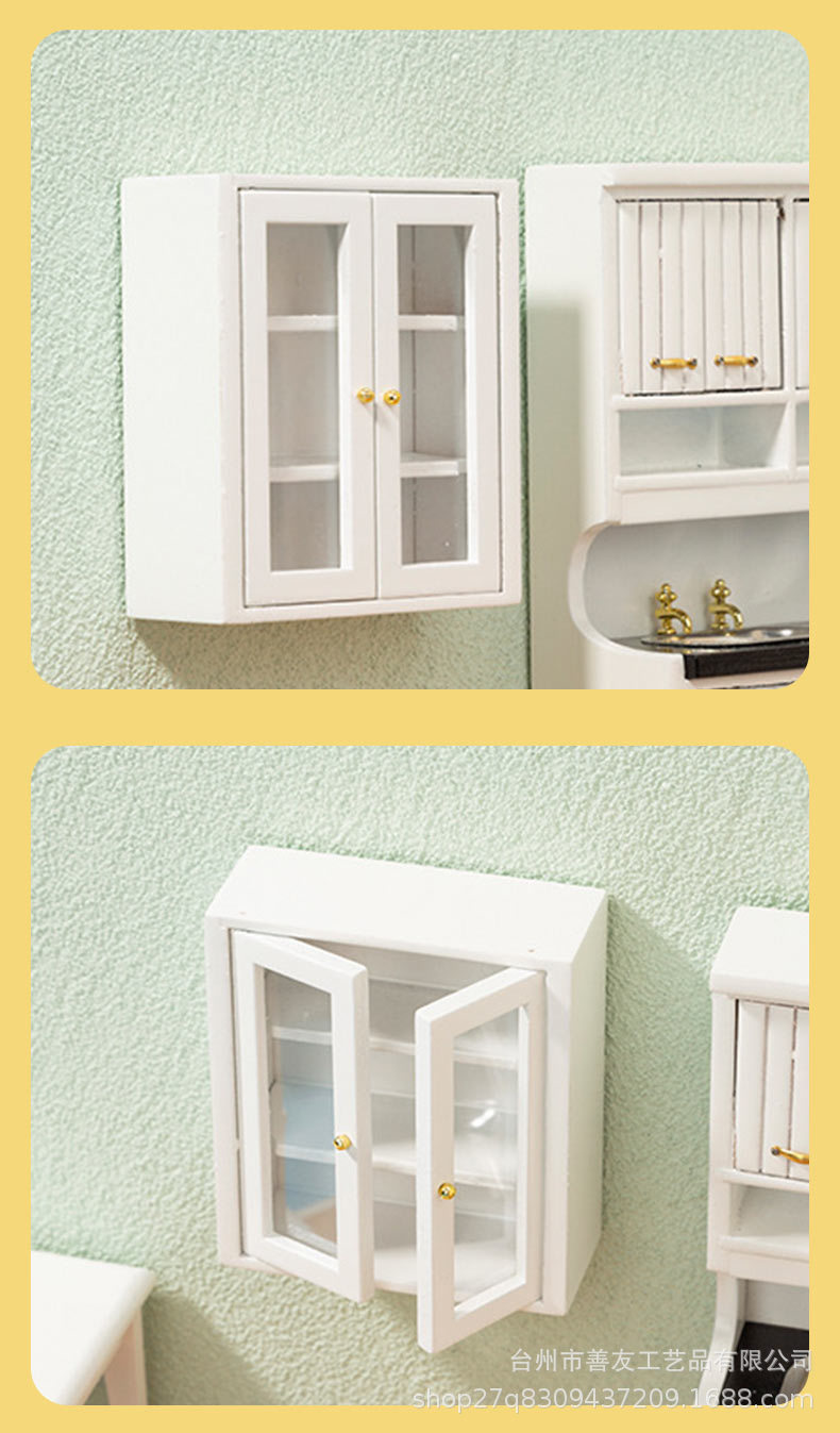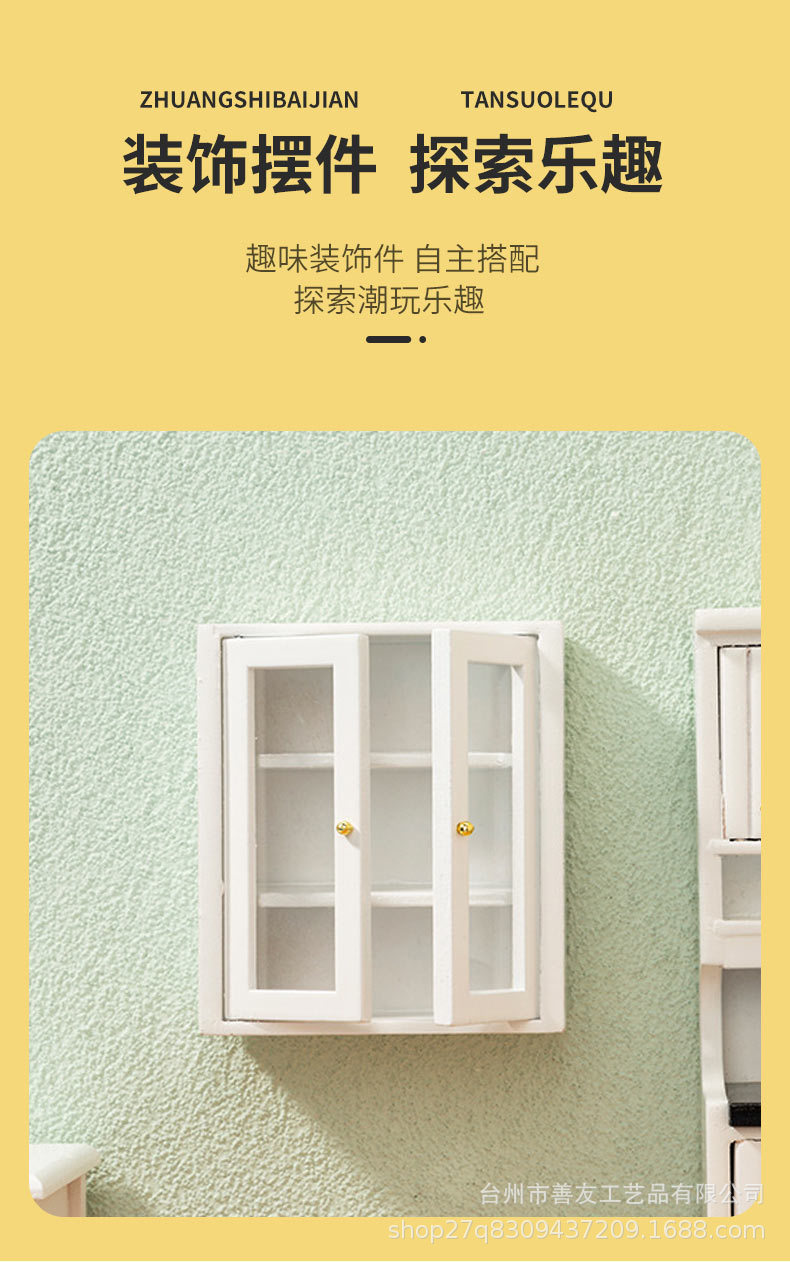 娃娃屋dollhouse迷你厨房家具儿童过家家玩具墙壁吊柜木质收纳柜