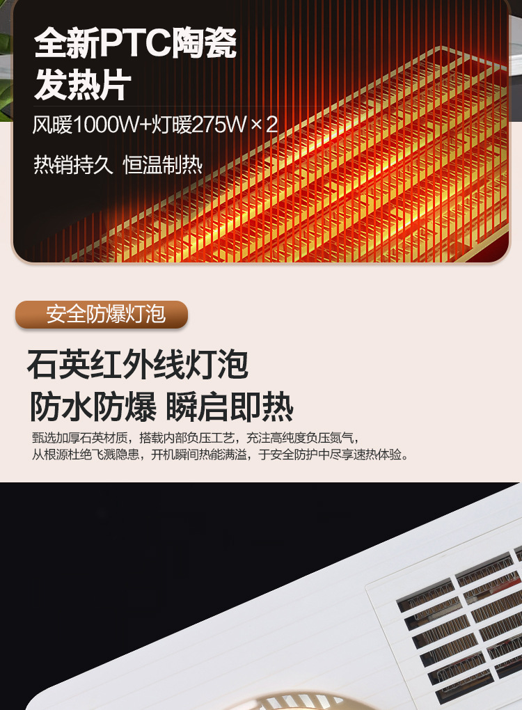 太太美壁挂式浴霸免打孔卫生间浴室挂墙取暖灯暖风暖一体防水防爆