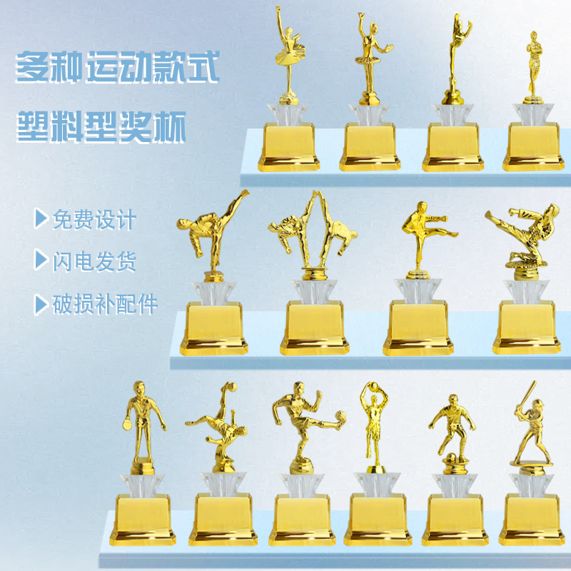 プラスチック製の金底の小さな賞杯、幼稚園、小学校、一般的な用途、卓球、野球、ダンス、ランニング、バランスバイクの製作賞杯