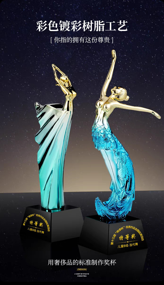 创意新款奖杯舞蹈树脂奖杯广场舞奖牌芭蕾拉丁儿童考级比赛颁奖品