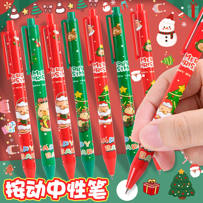 圣诞卡皮巴拉中性笔卡通学生0.5黑色水笔ST按动笔圣诞节文具礼品