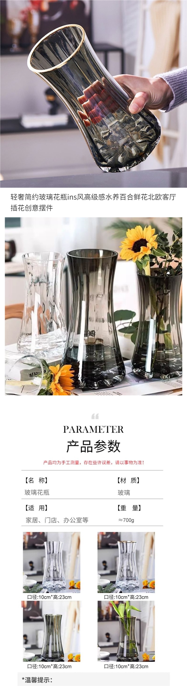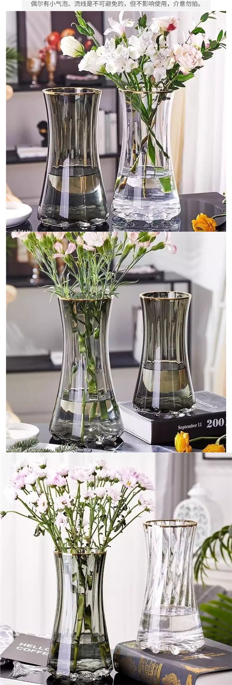 轻奢花瓶插花高级感玻璃透明水养大口径水培富贵竹鲜花瓶客厅摆件