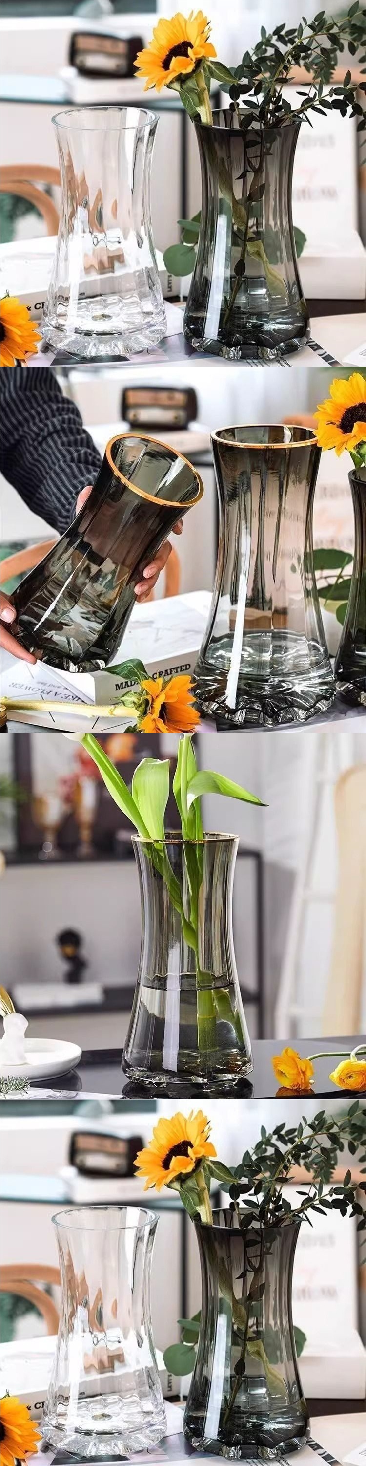 透明ガラスの富竹、酔木、銀柳、厚みのある花瓶、インスタイル、高価値、大口径の龍竹と龍柳