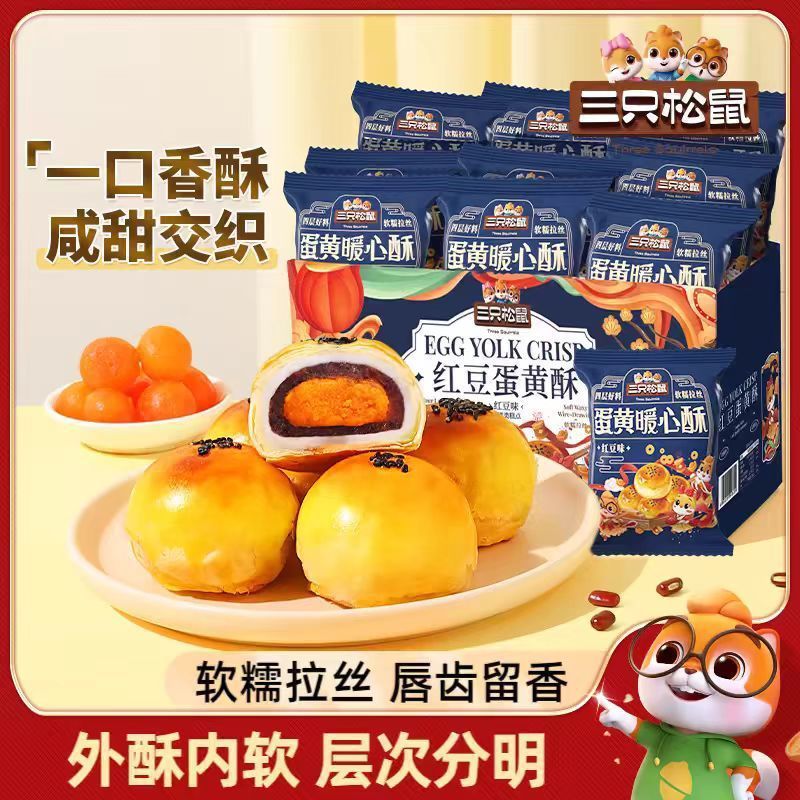 三リス卵黄クリスプギフトボックス 500 グラム小豆風味中華菓子スナック雪梅娘