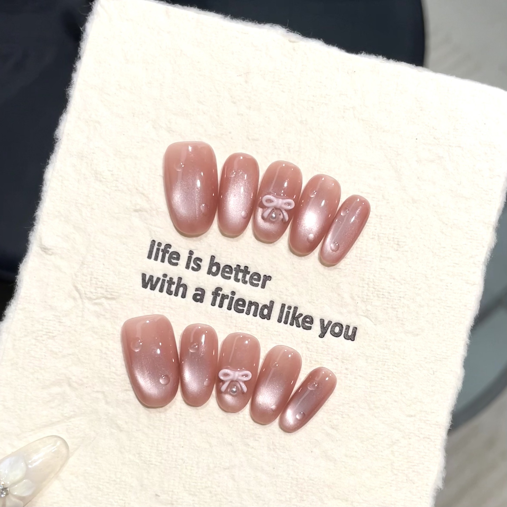 艺禾穿戴甲【粉露珠】显白纯欲猫眼渐变腮红追光猫眼简约手工美甲