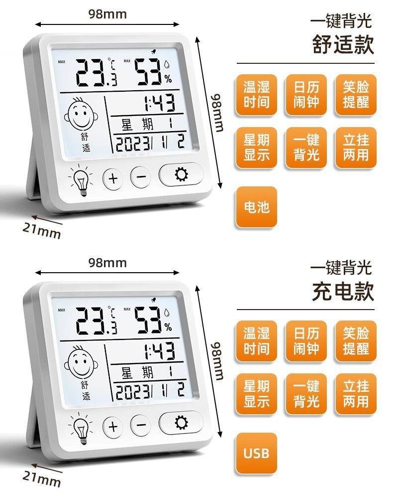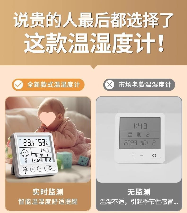电子温湿度计家用高精准度室内壁挂婴儿房气温显示温度湿度表闹钟