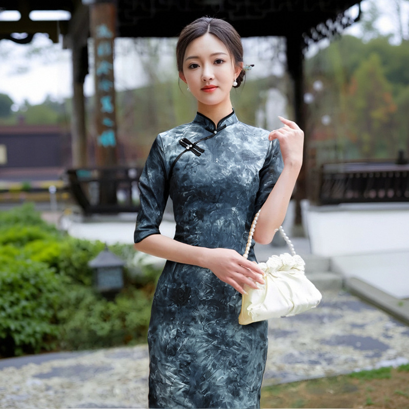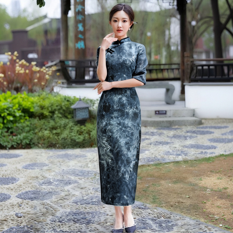 2025时尚新款改良旗袍文艺气质连衣裙日常可穿中式国风修身长款