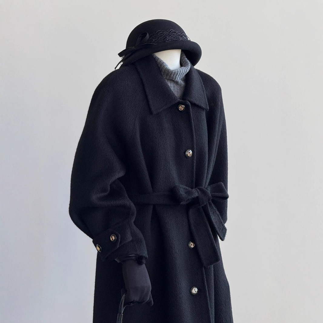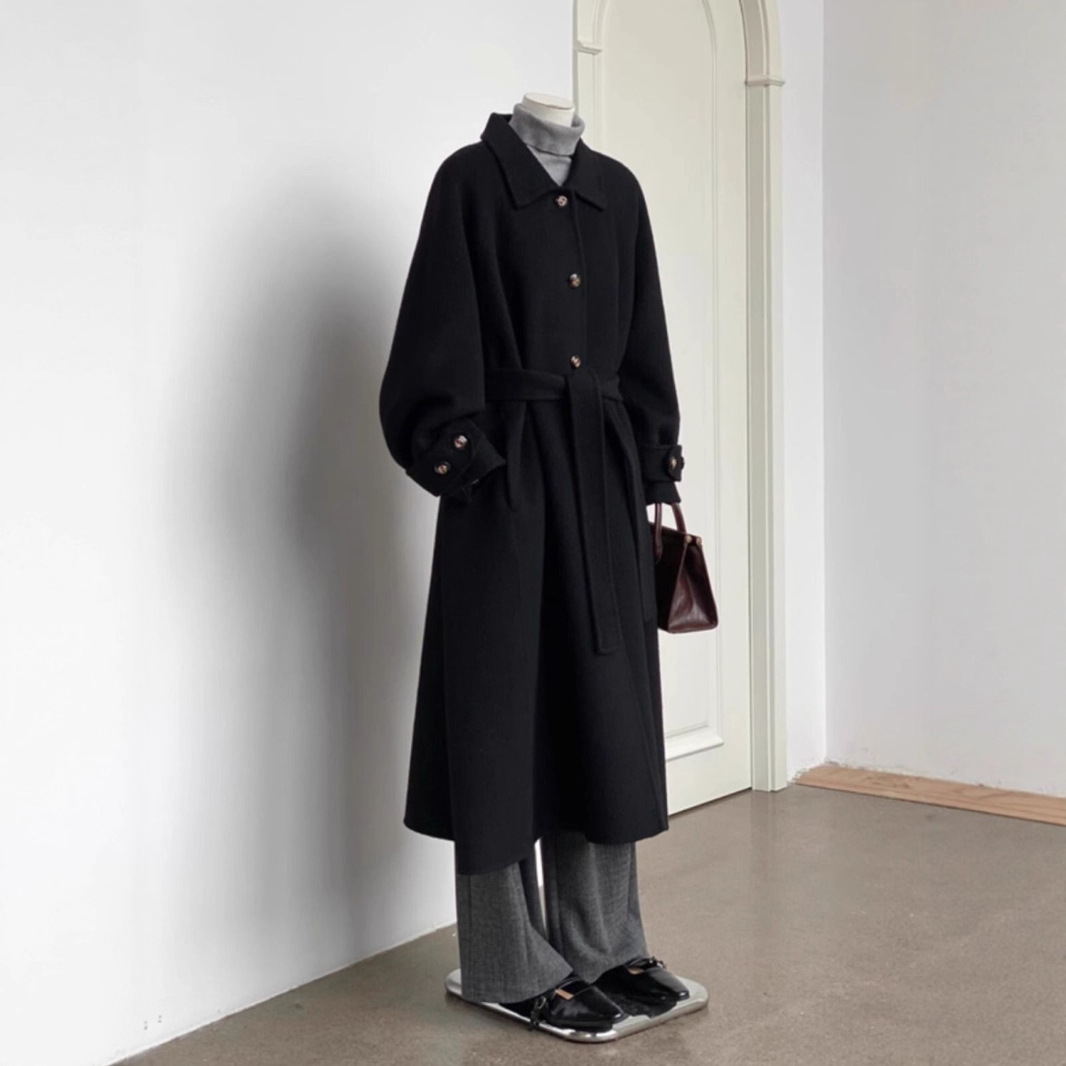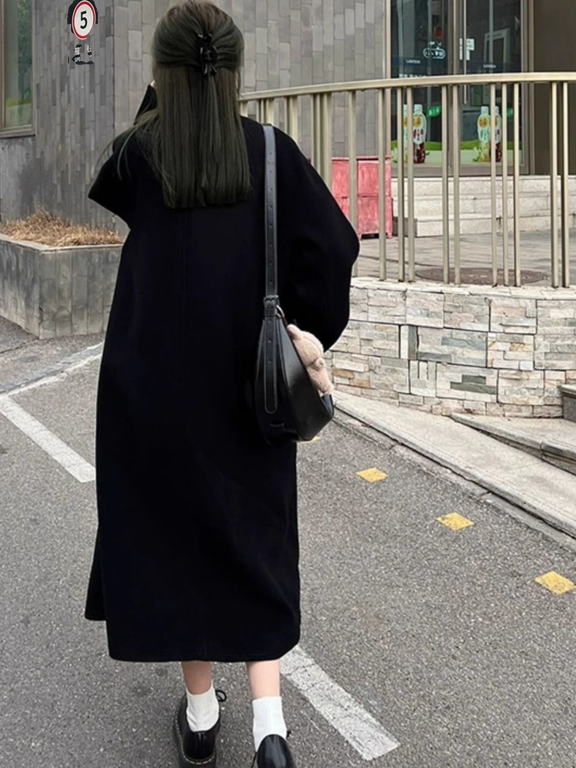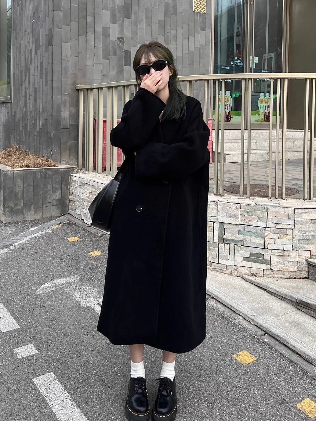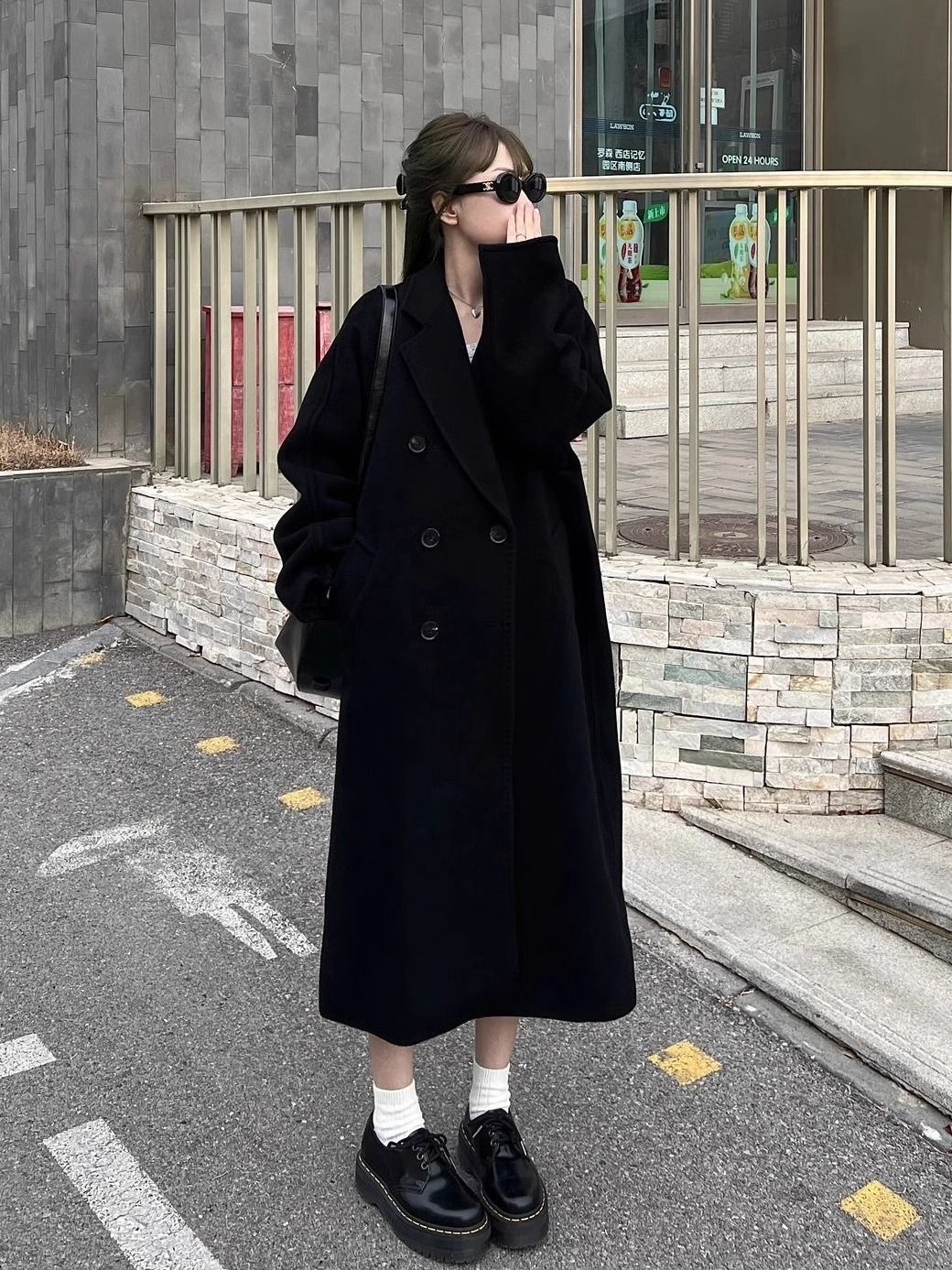 黒のウールコート女性のための 2025 秋と冬の新しいハイエンド韓国ヘップバーンスタイル厚いウールコートトレンディ