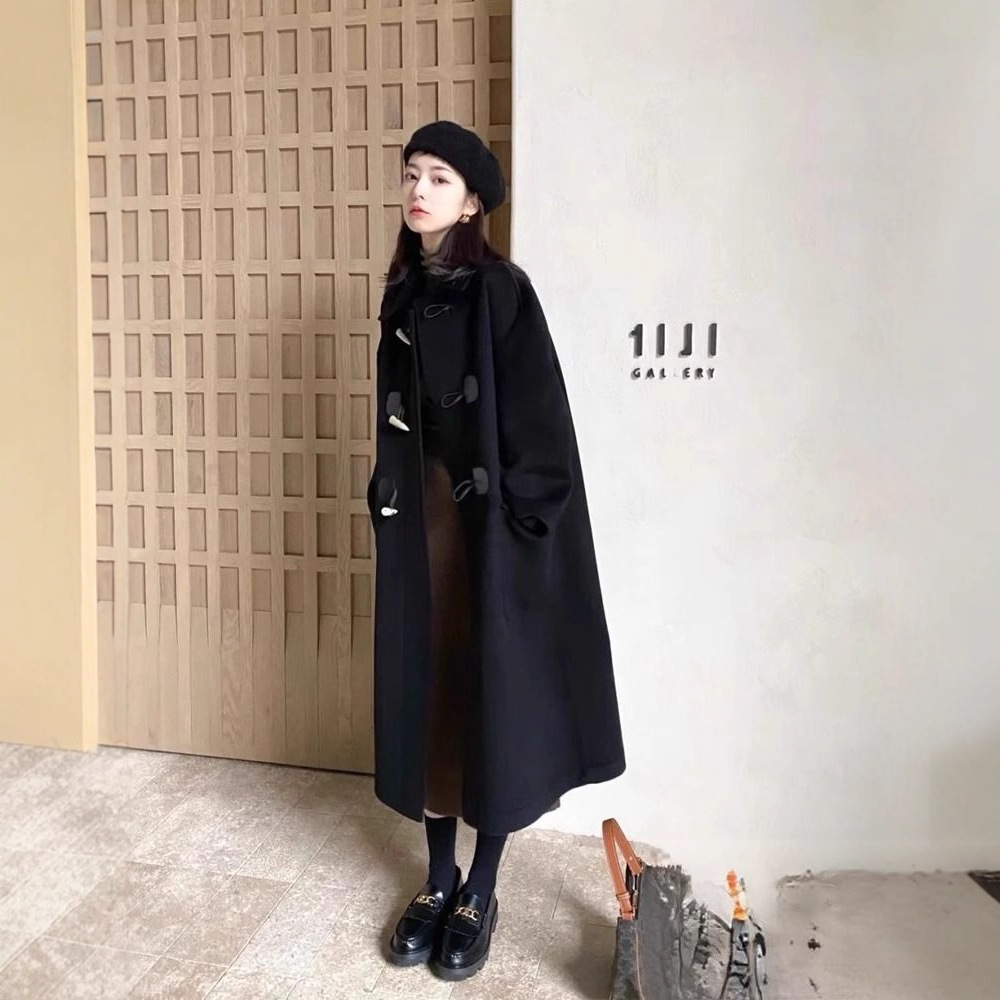 黒のウールコート女性のための 2025 秋と冬の新しいメイラード韓国ヘップバーンスタイル厚いウールコートトレンディ