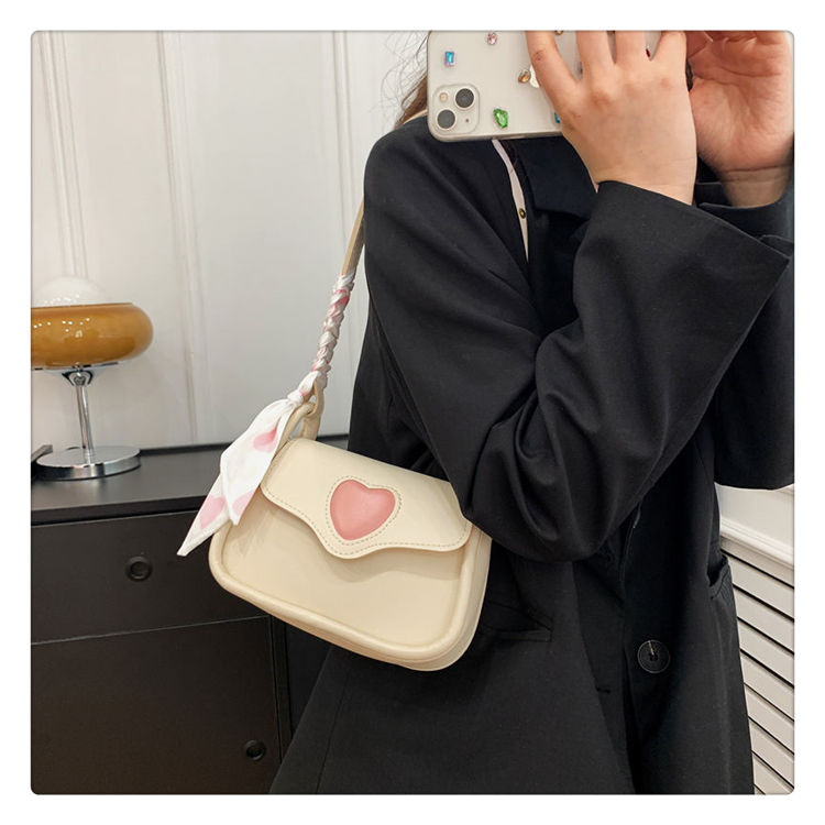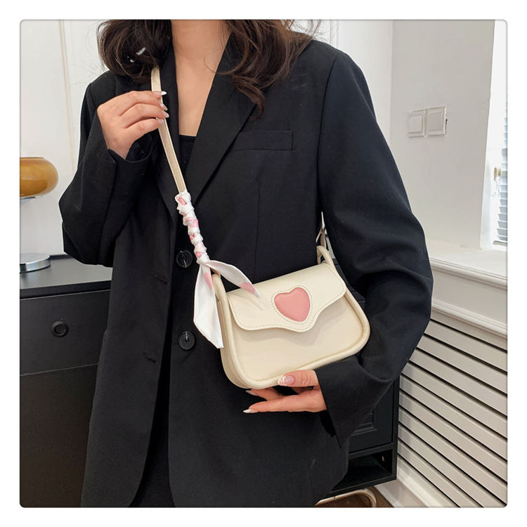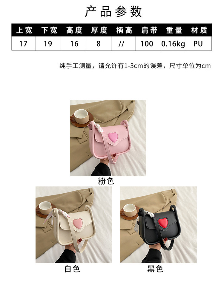 2025时尚小方包夏季新款简约风百搭单肩斜挎包小众拼接爱心腋下包