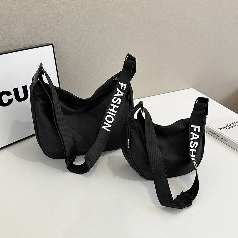 ファッショナブルな GW 文字刺繍脇の下バッグ女性のための 2025 新しいナイロン布餃子バッグイン西洋スタイルショルダーバッグ