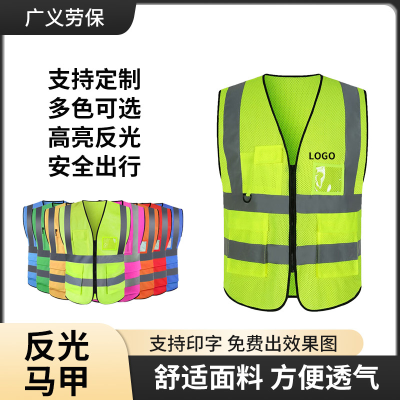 反射ベスト、建設現場ベスト、建設衛生任務、夜間発光サスペンダー、カスタムプリントロゴ付き蛍光服
