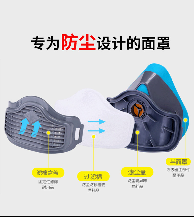 Tangfeng TF1502 防塵マスク工業用大理石ワークショップ防塵マスク微粒子防止シリコーンダスト研削