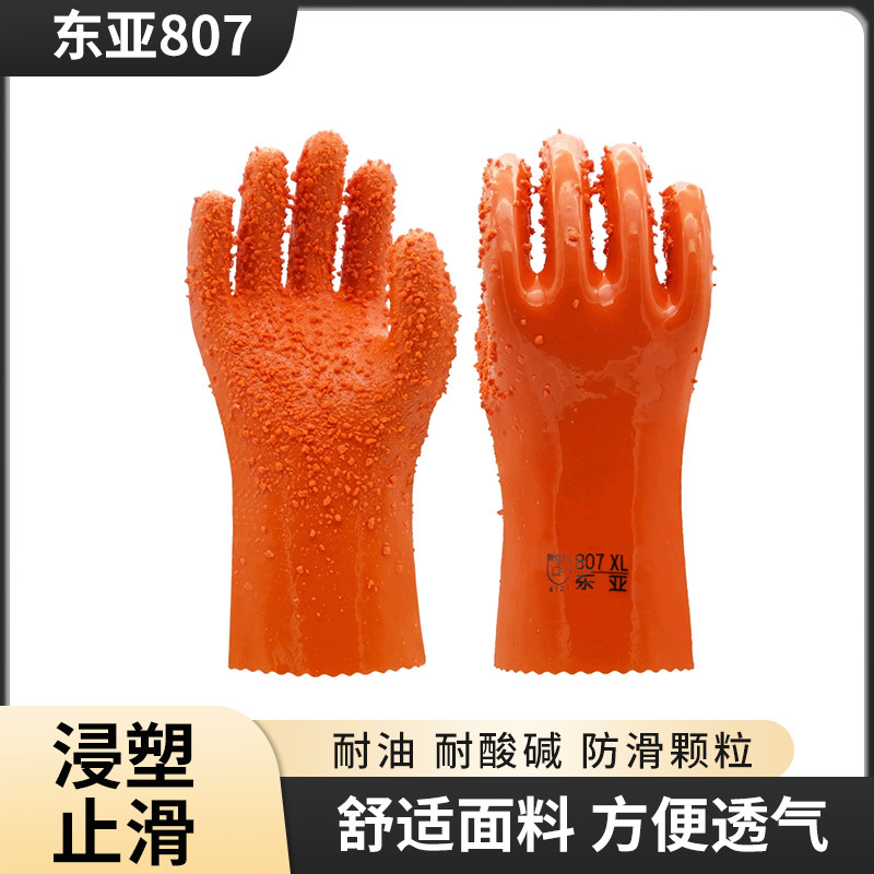 東アジア 807 滑り止め手袋完全浸漬粒子酸とアルカリ耐性耐油性工業用完全浸漬滑り止め労働保護手袋