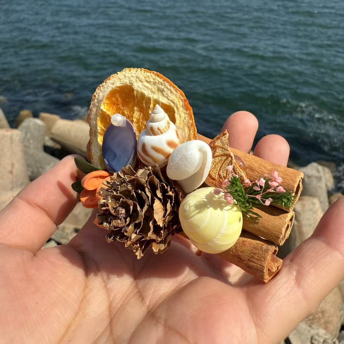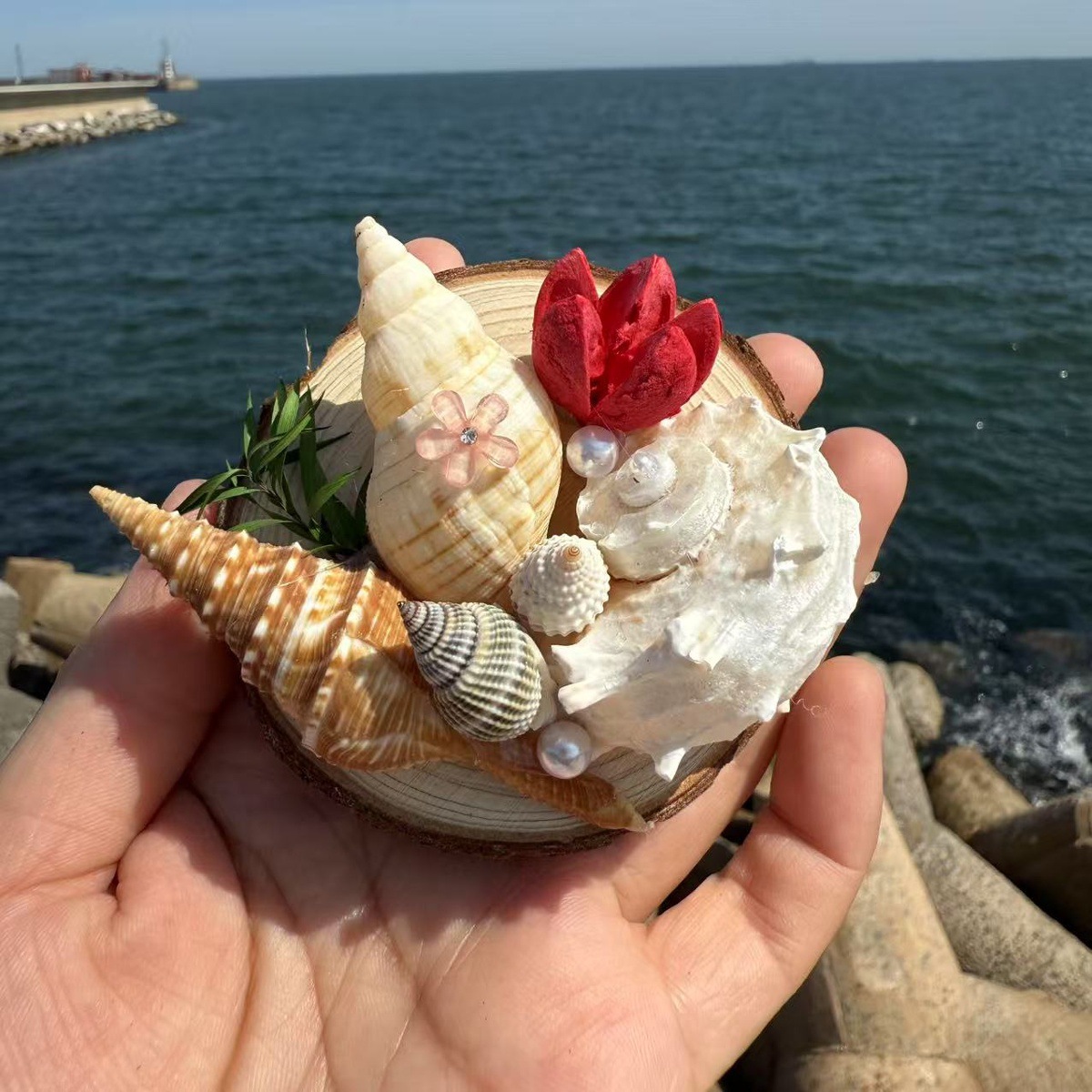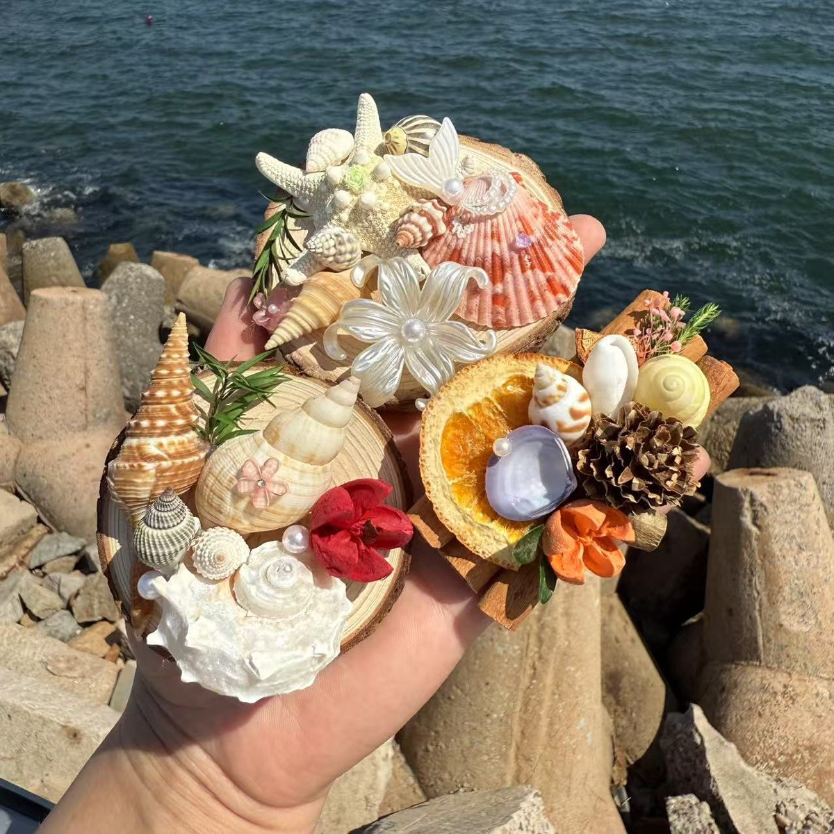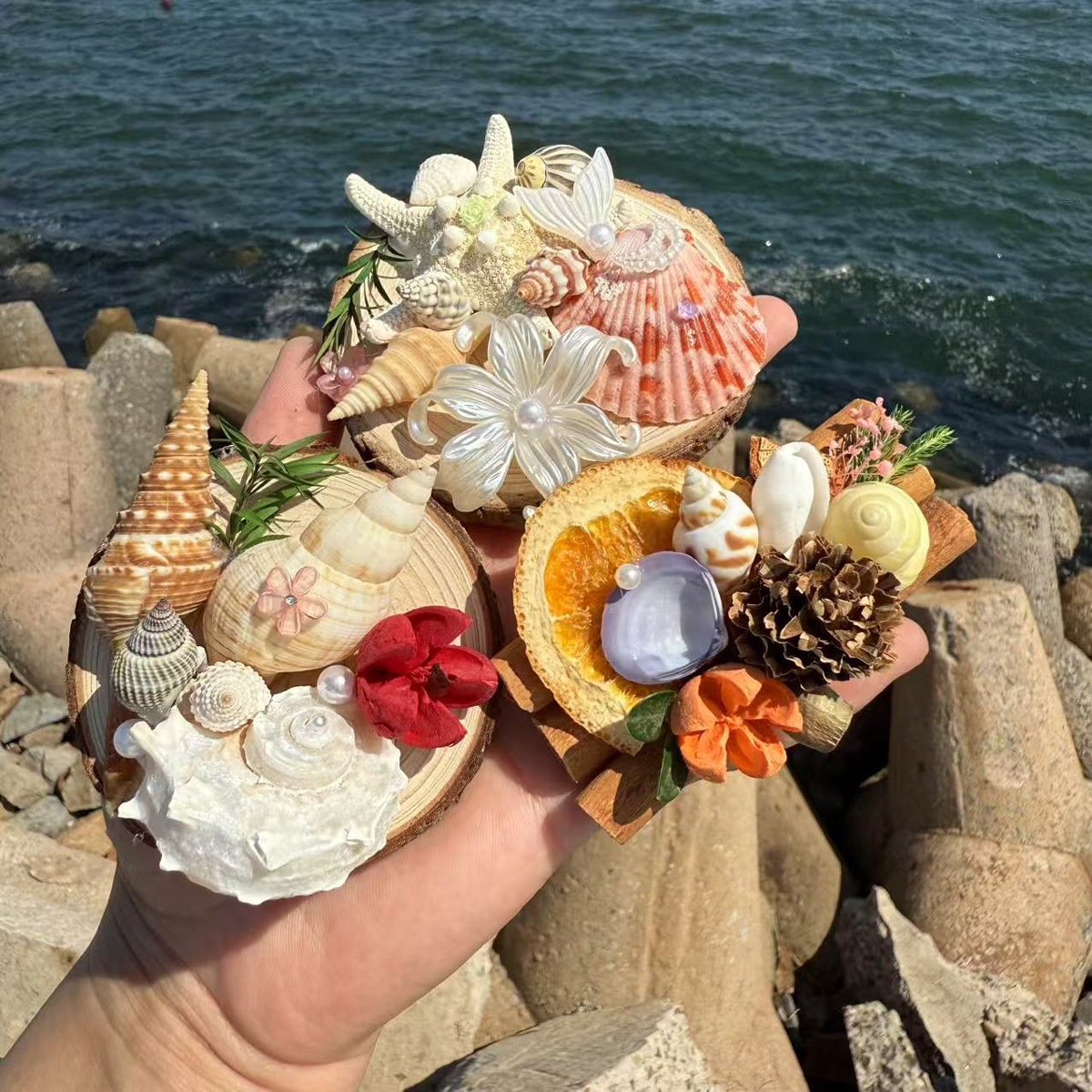 天然粉ウニ貝殻サザエ創意手作りdiy地中海装飾台空気パイナップル多肉植木鉢