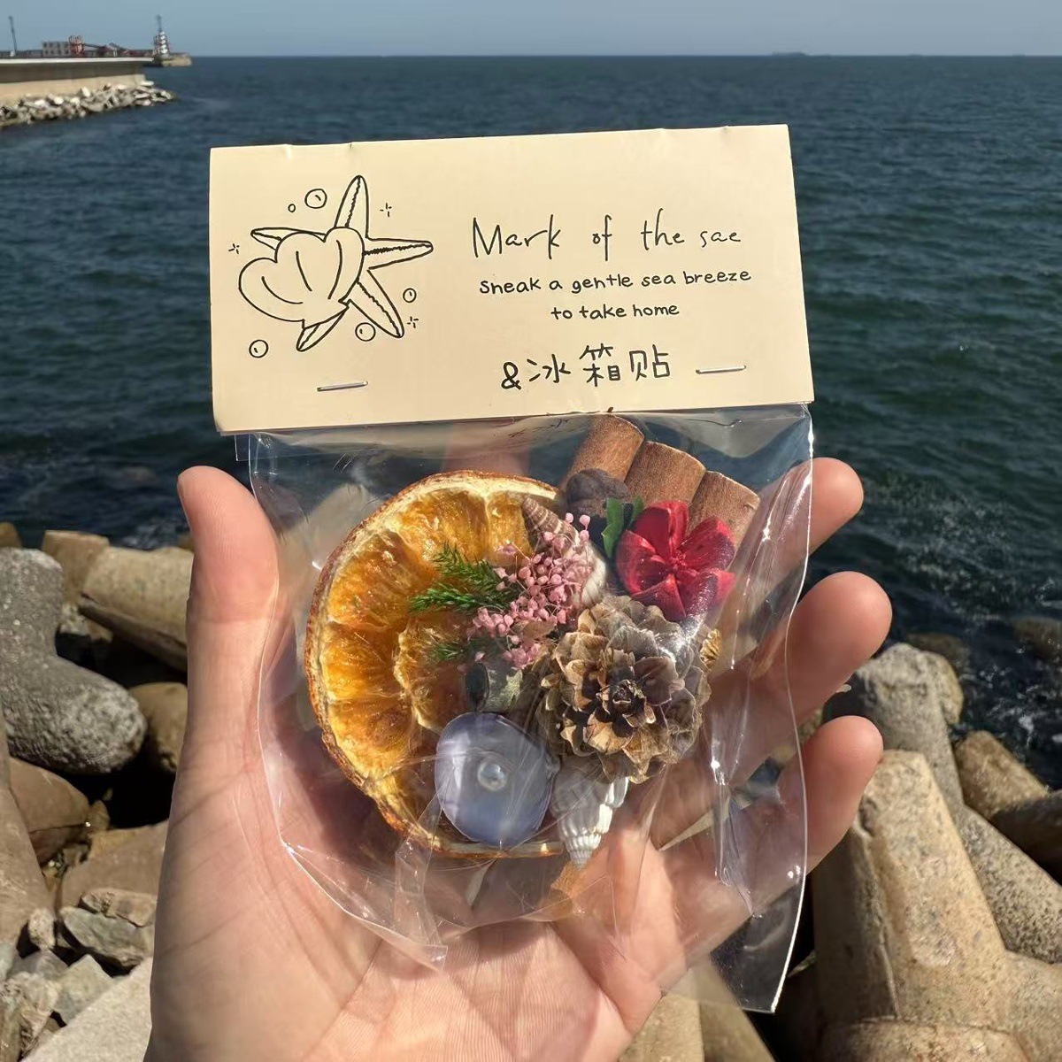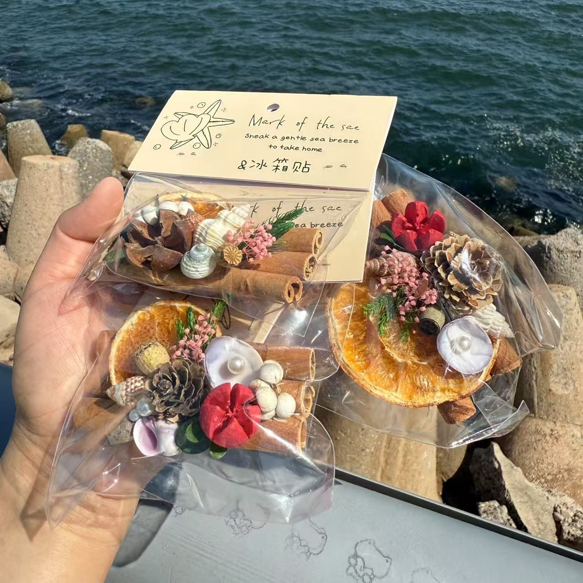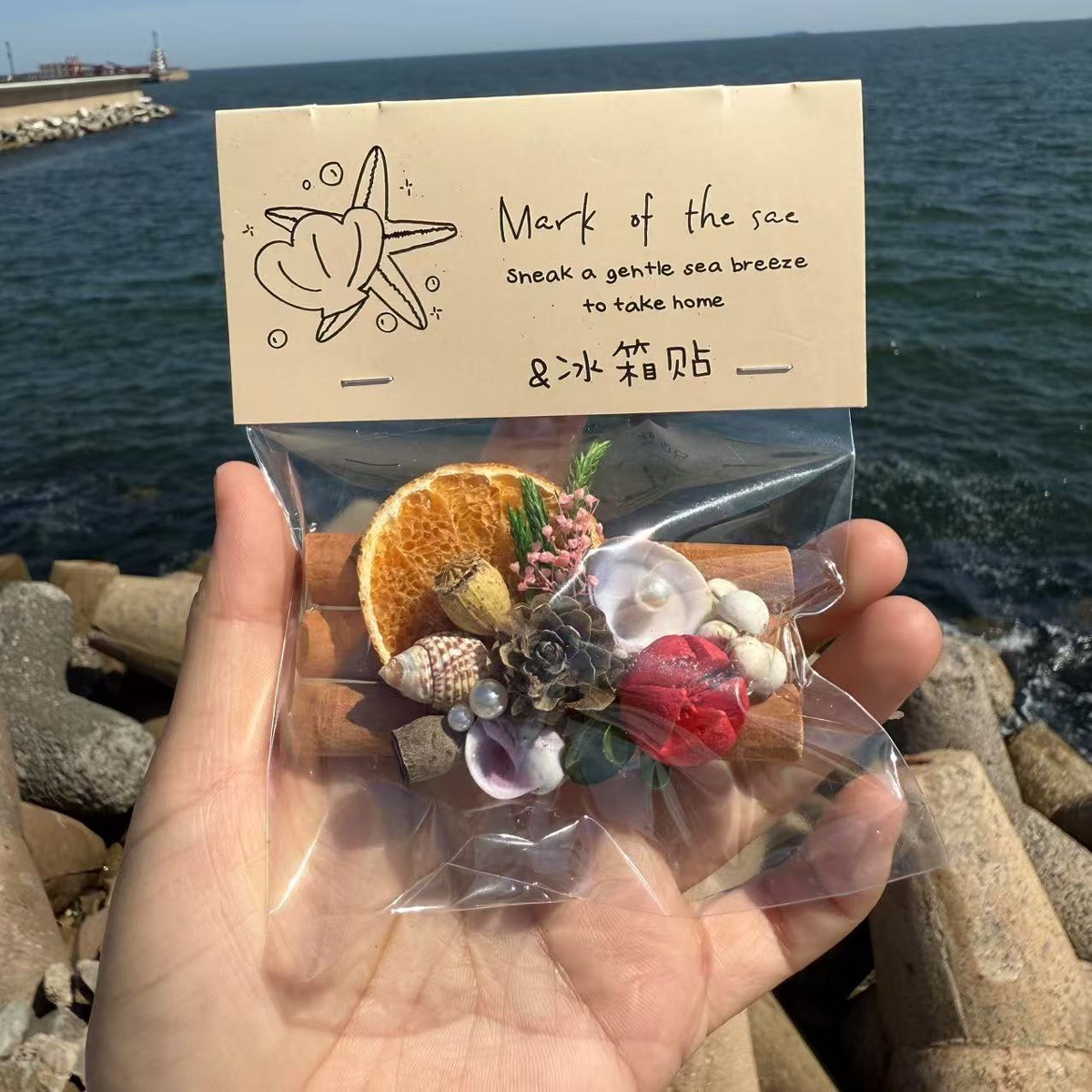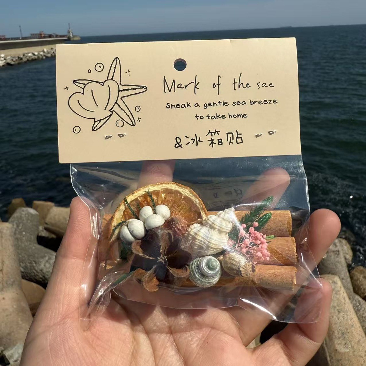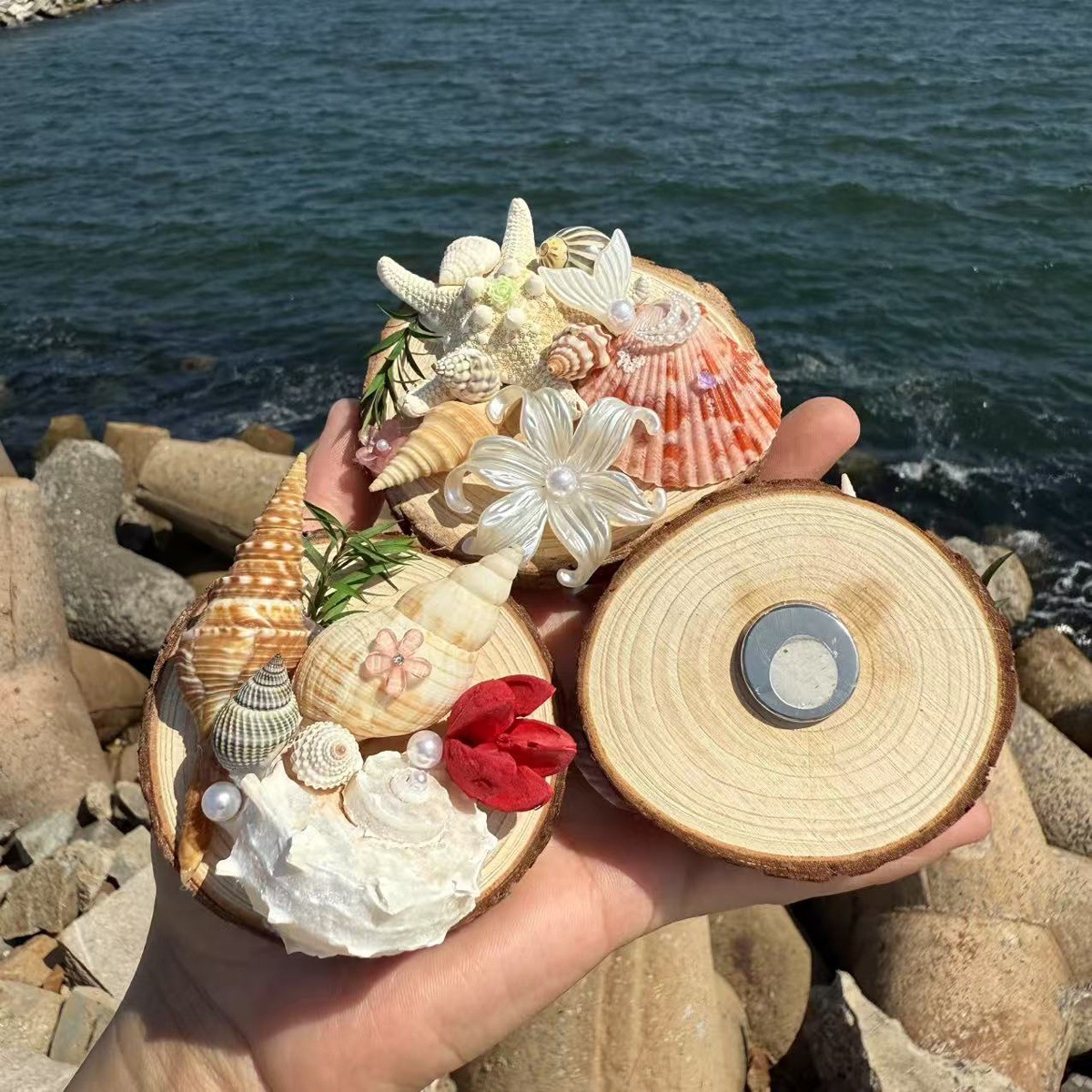 天然贝壳海螺海星创意木片冰箱贴挂件旅游城市纪念品伴手礼