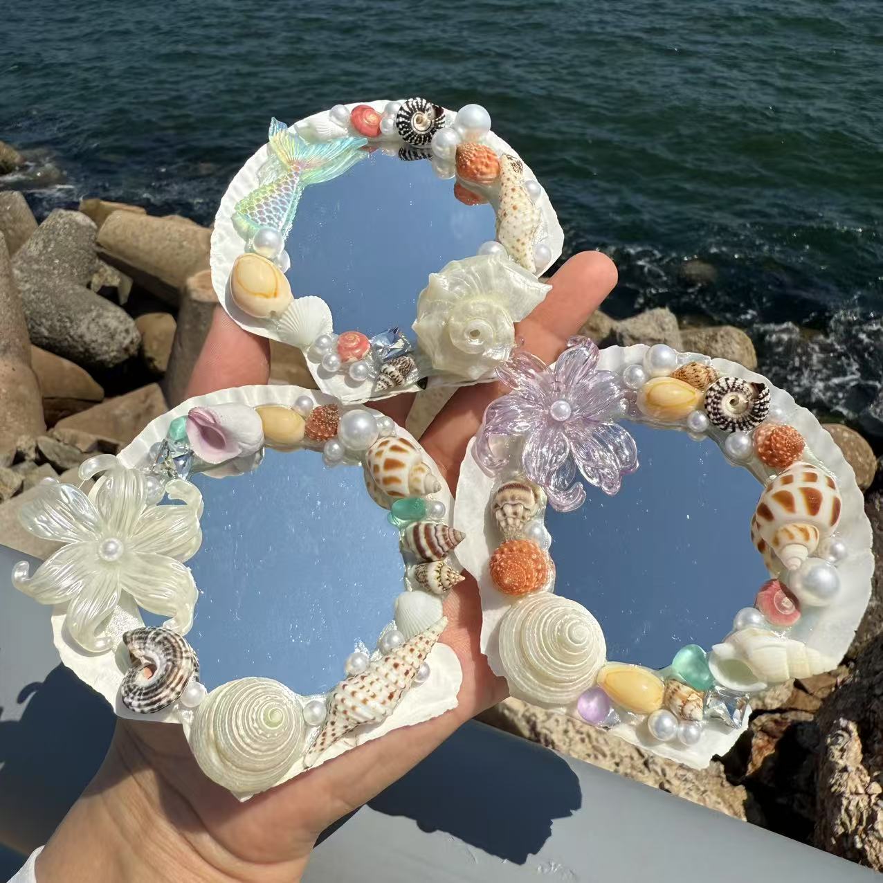 天然贝壳海螺贝壳镜框化妆镜海边度假创意礼品生日礼物伴手礼