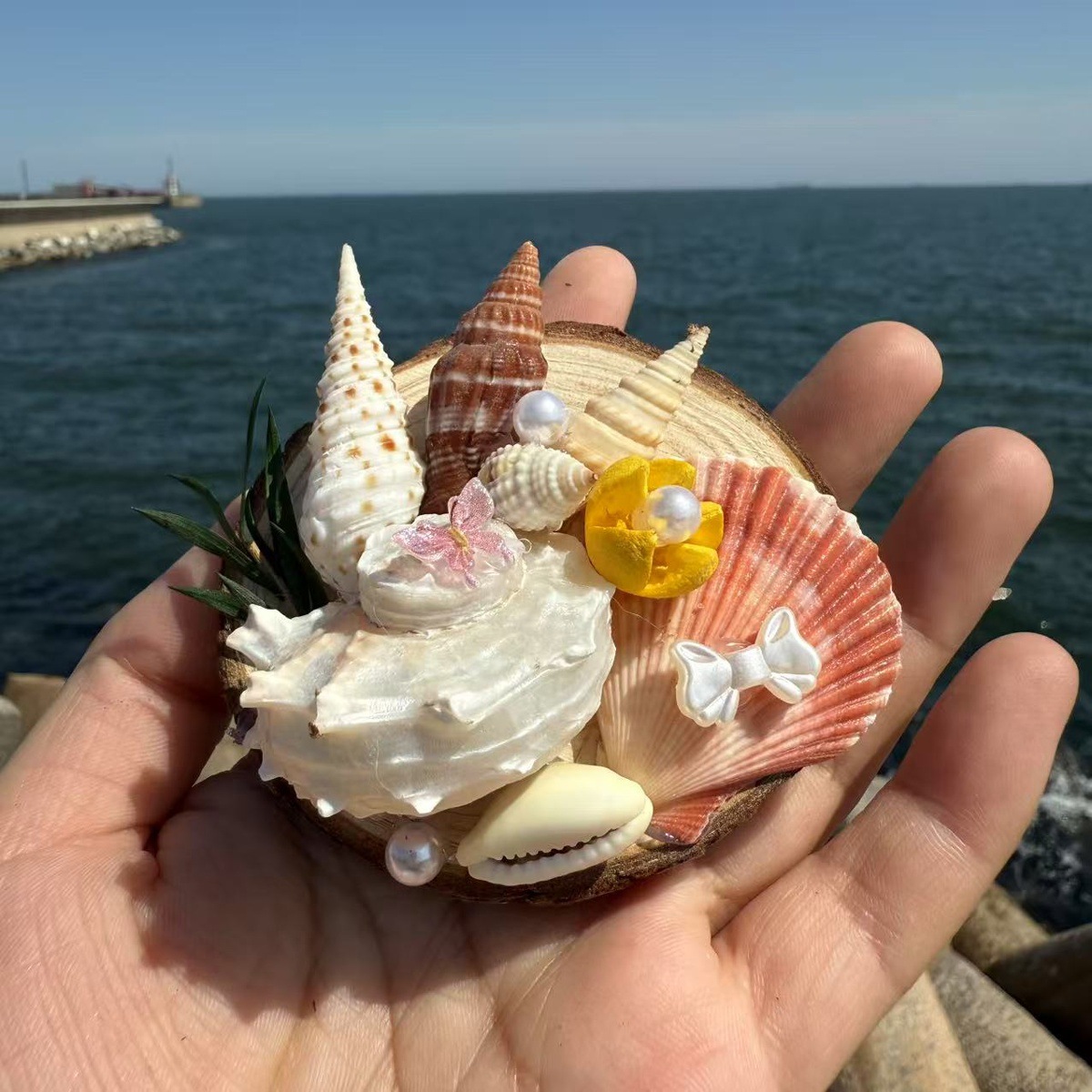 天然海螺贝壳草帽冰箱贴旅游纪念品文创伴手礼蝴蝶结创意工艺品