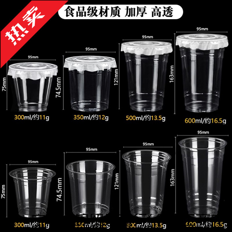 奶茶杯子一次性咖啡杯带盖网红冷饮品料瓶绿豆沙果橙汁摆摊打包杯