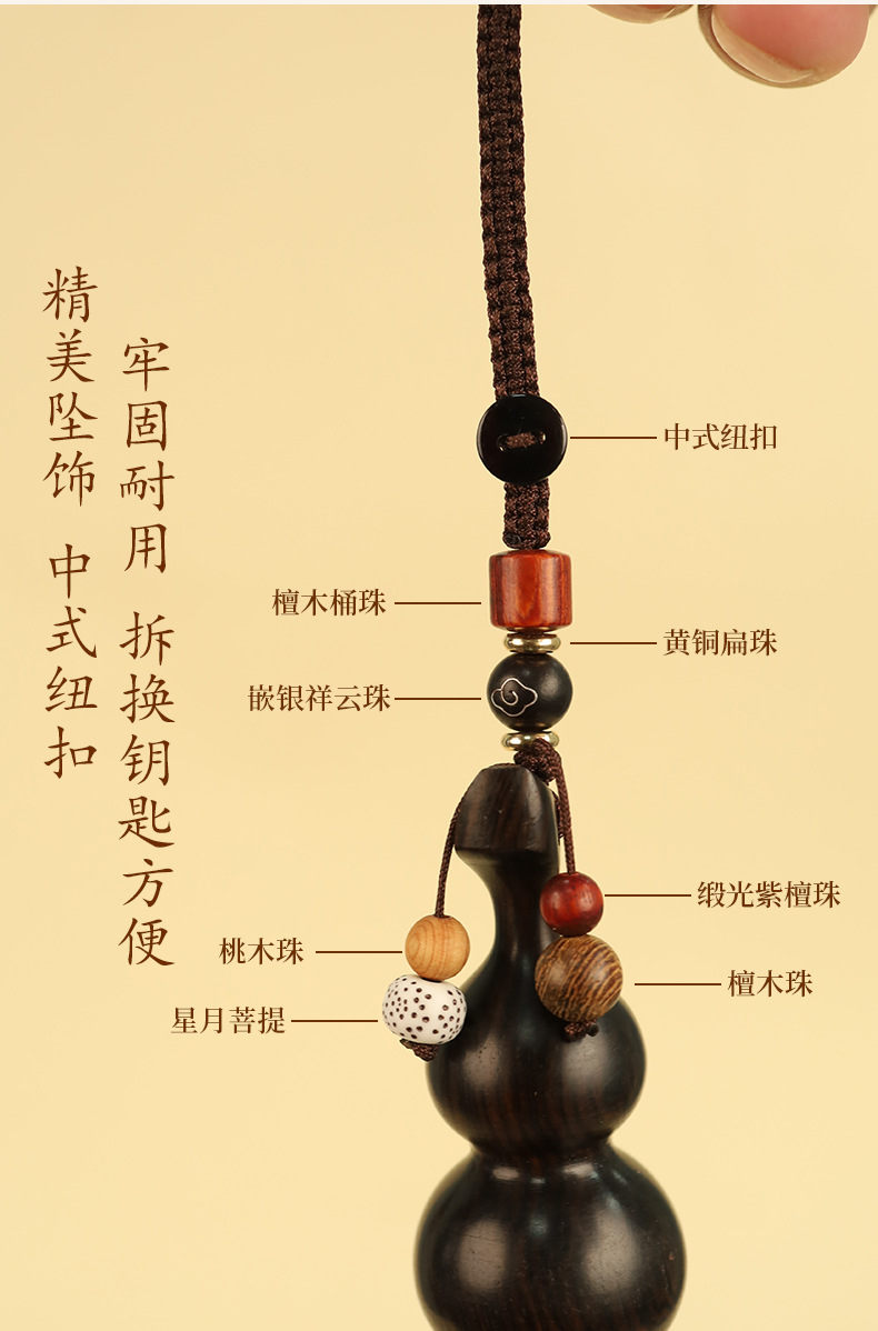 檀木葫芦钥匙扣挂链木质葫芦吊坠血檀手把件配饰挂件文玩实木无漆