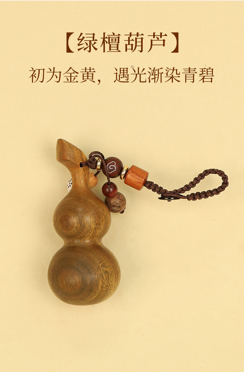 天然緑白檀ひょうたんキーホルダー無垢材彫刻文具ハンドピースデスクトップ茶ペットひょうたん車の装飾