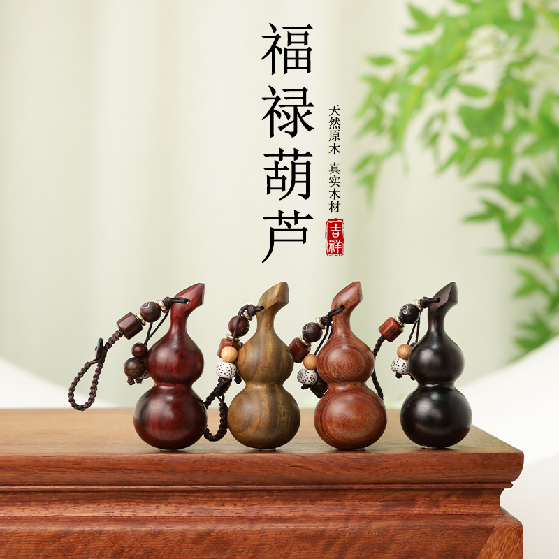 天然绿檀紫檀木葫芦挂件钥匙扣实木雕刻随身携带福禄手把件配饰