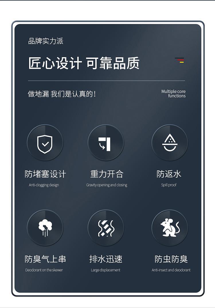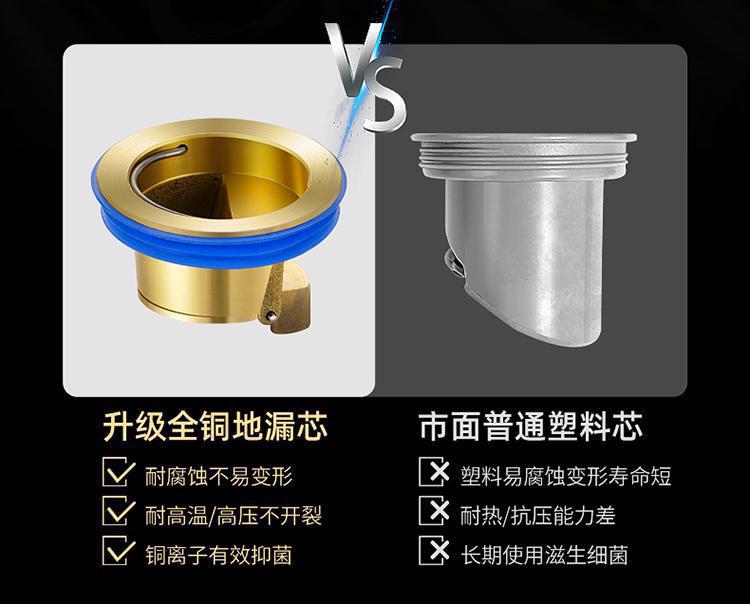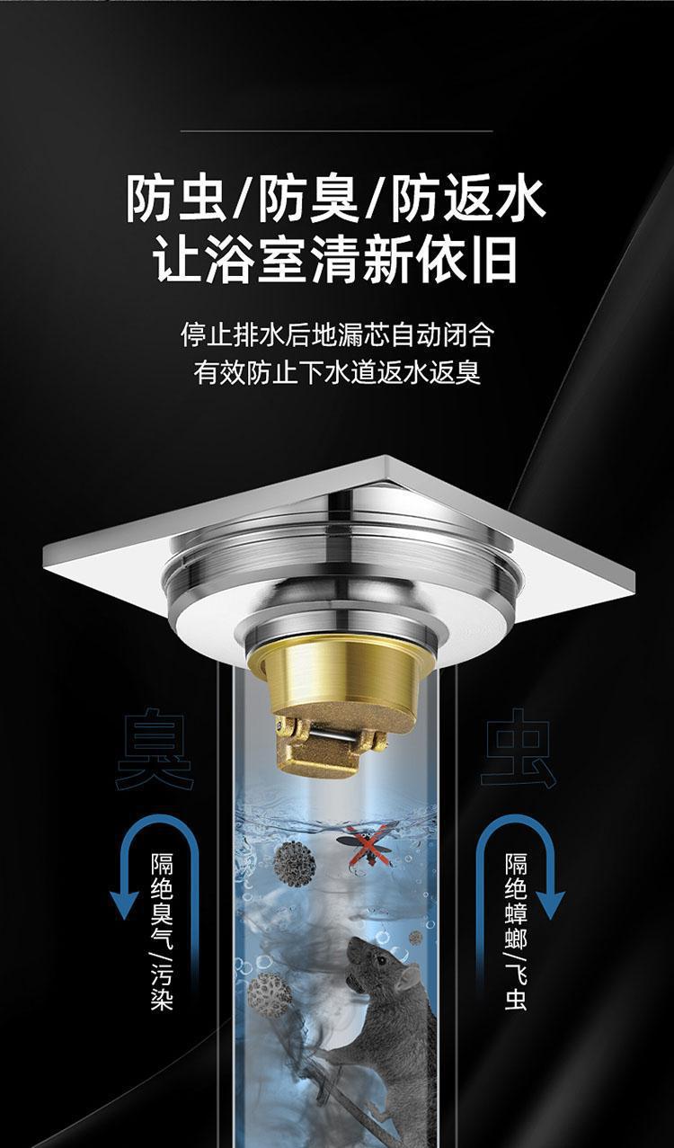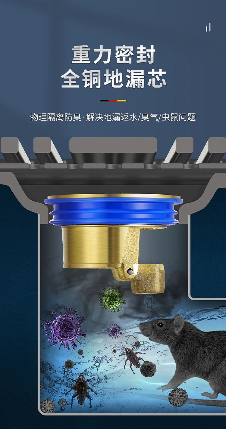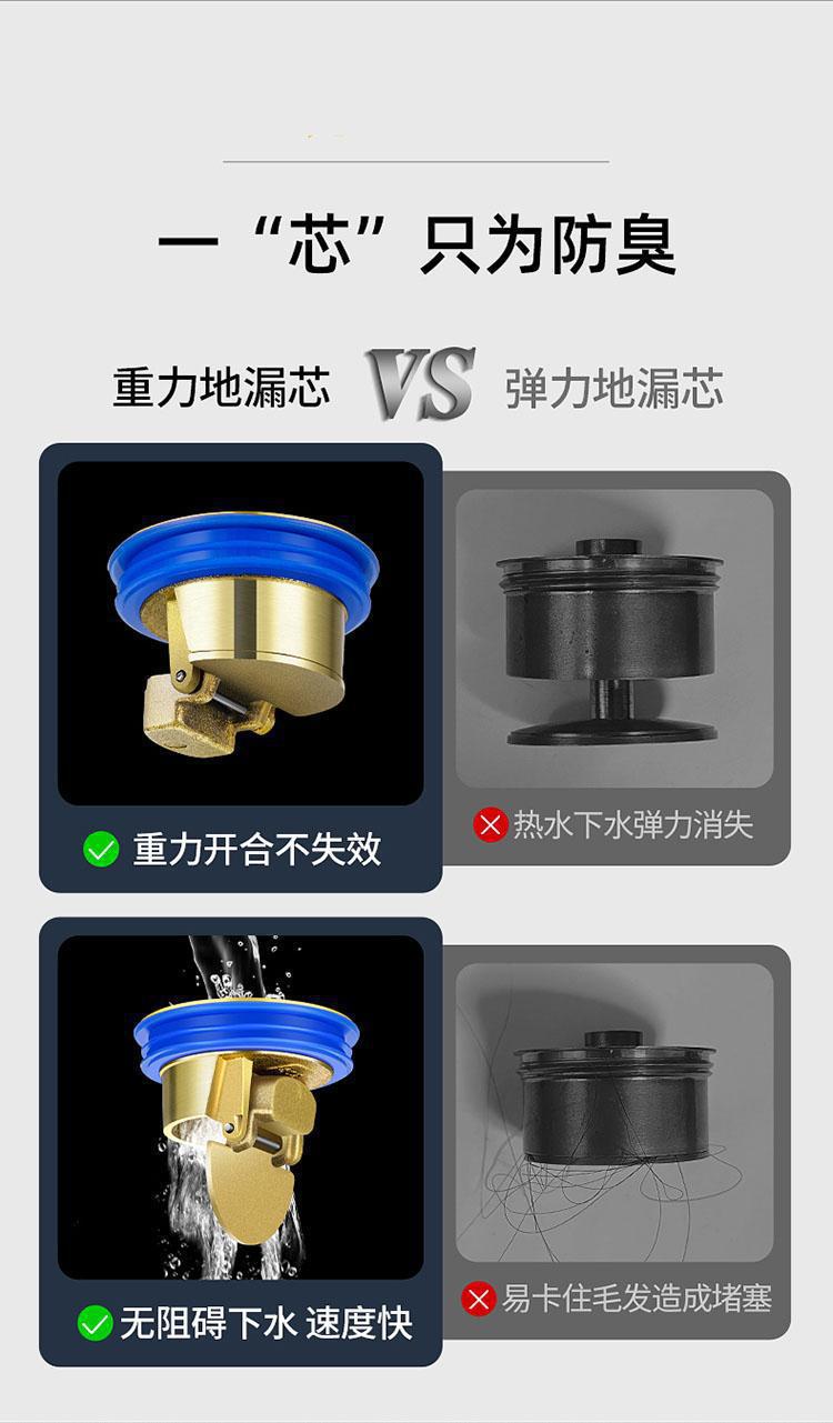 卫生间地漏防虫防臭神器反味封闭盖全铜重力内芯下水管厕所通用