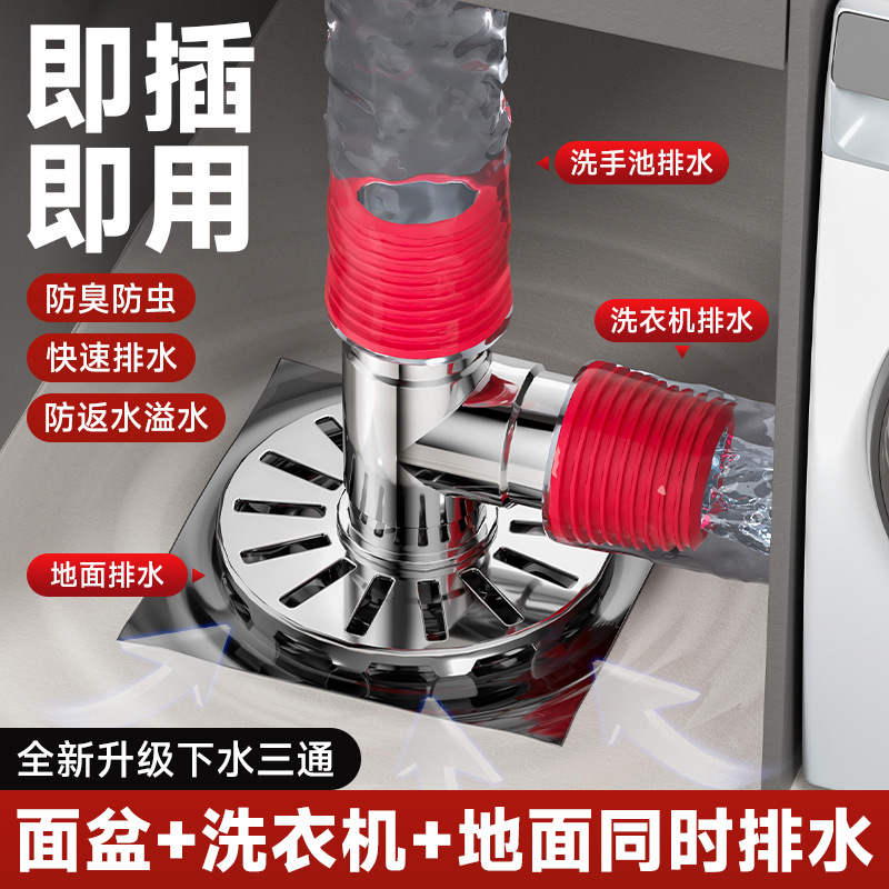 洗衣机下水管地漏接头防臭防虫防溢两用卫生间专用三通盖排水管道