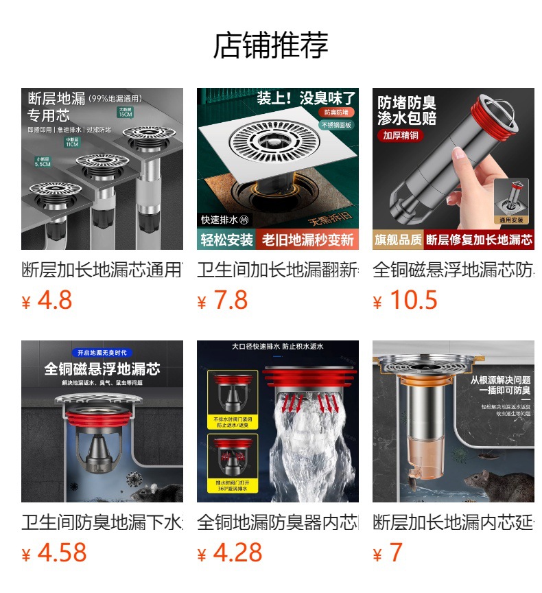 规格 铜色 全铜防臭下水地漏芯,银色 全铜防臭下水地漏芯,5.5cm 全铜断层加长地漏芯,7.5cm 全铜断层加长地漏芯,9.5cm 全铜断层加长地漏芯,5.5cm 全铜断层加长地漏带螺纹,7.5cm 全铜断层加长地漏带螺纹,9.5cm 全铜断层加长地漏带螺纹,电镀铜6cm翘板大滤网地漏芯,铜色铜6cm翘板大滤网地漏芯,枪灰铜6cm翘板大滤网地漏芯