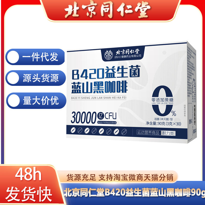 北京同仁堂B420益生菌蓝山黑咖啡90g蓝山黑咖啡颗粒固体饮一件发
