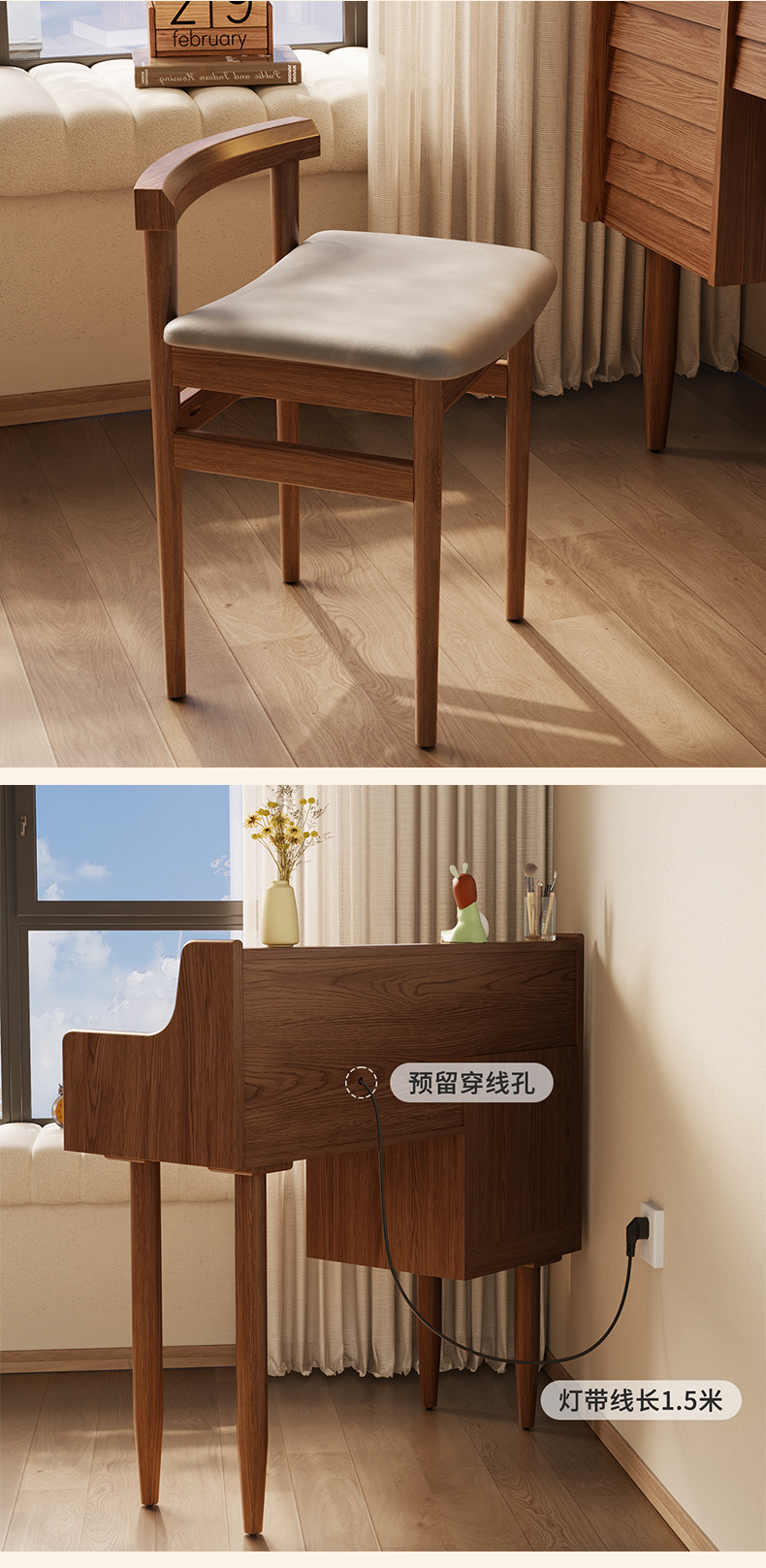 中古クリームスタイル無垢材ドレッシングテーブル収納一体型シンプルモダンウォールナットカラーチェスト寝室収納ドレッシングテーブル
