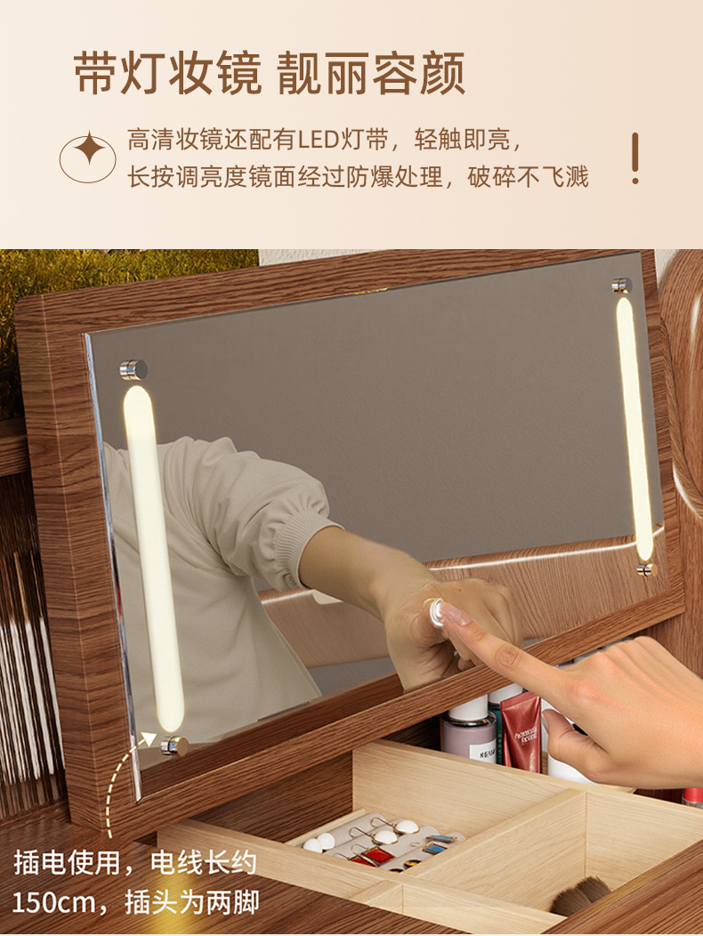 梳妆台家用现代简约卧室小户型专用收纳斗柜一体床头储物化妆桌镜