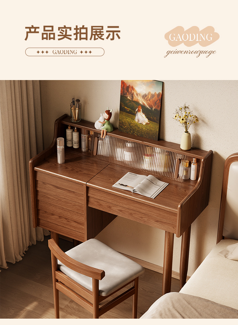 实木梳妆台收纳柜化妆台现代简约卧室翻盖梳妆桌书桌化妆桌一体