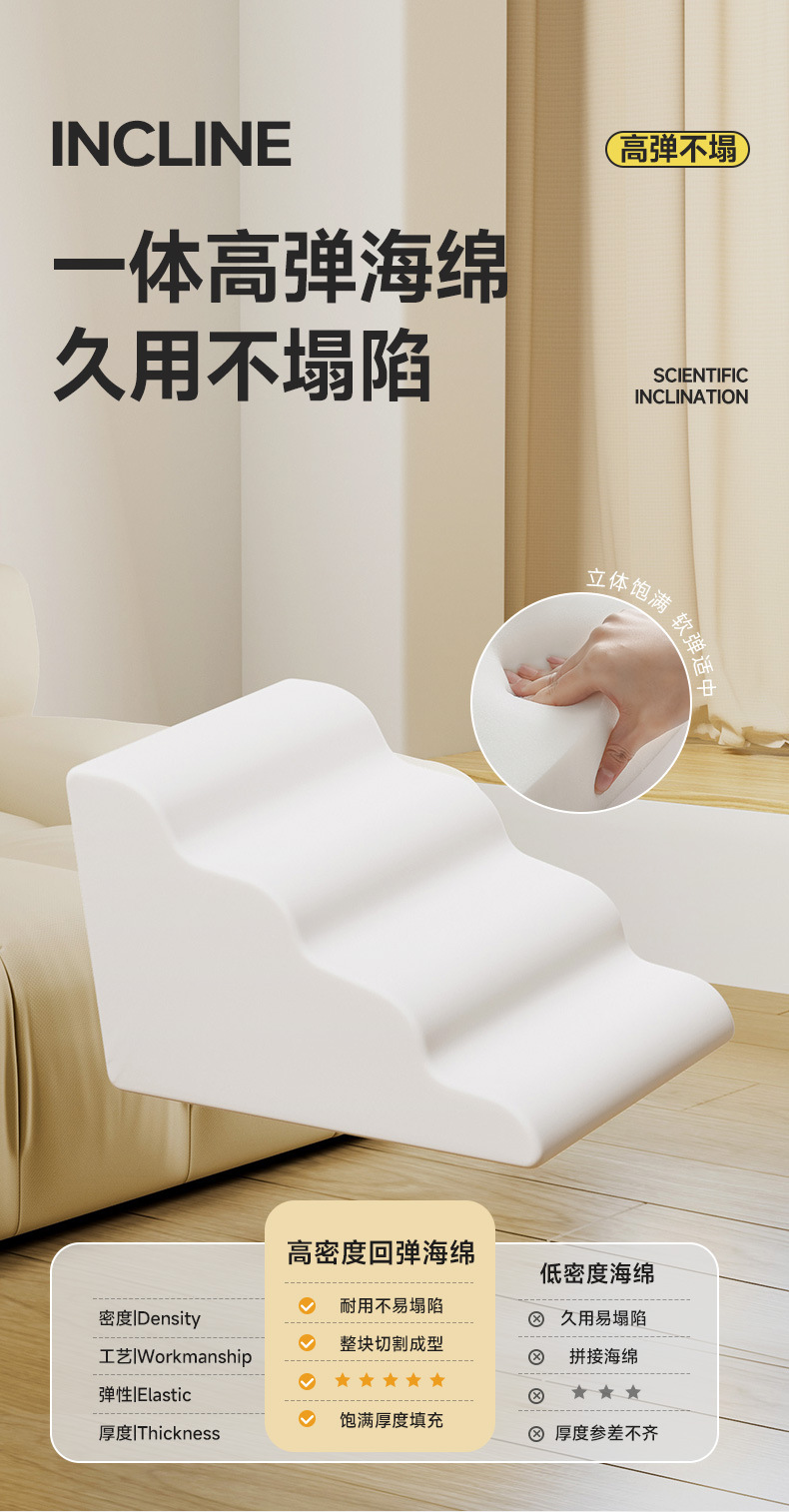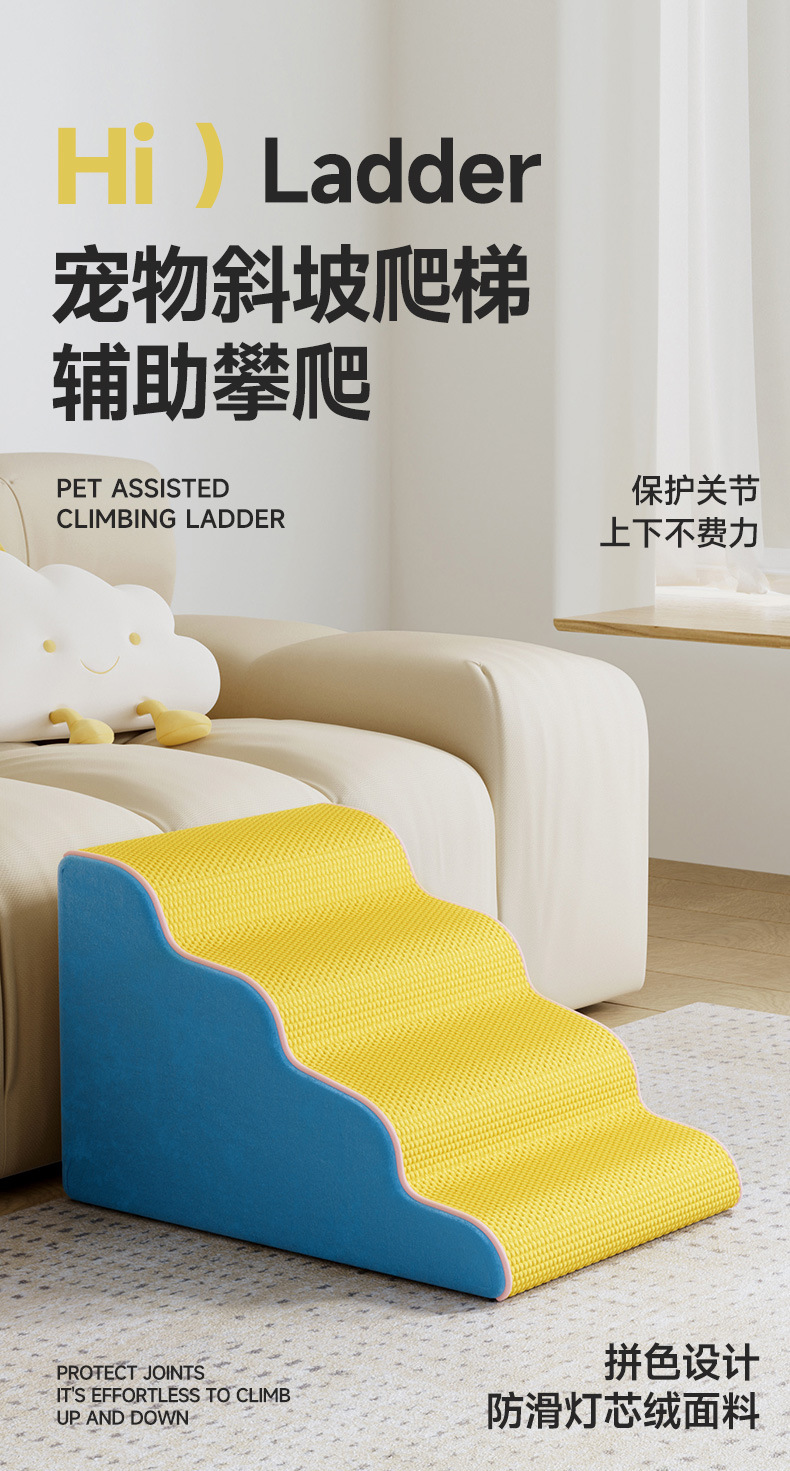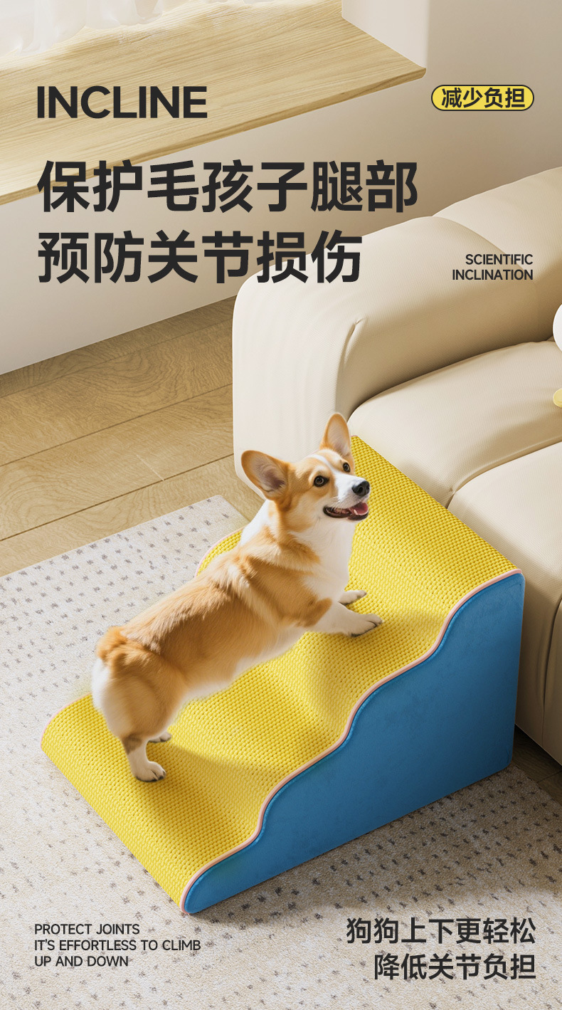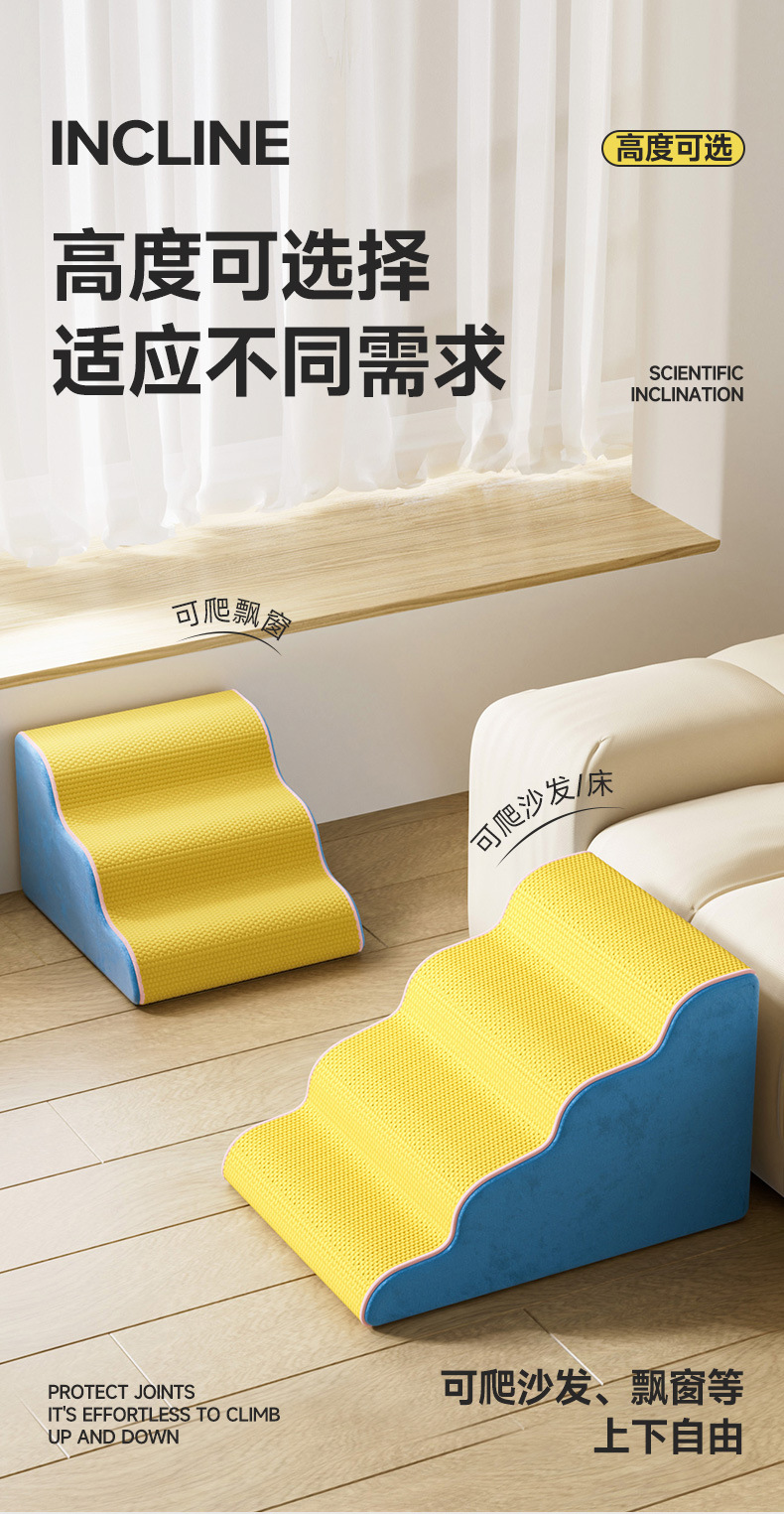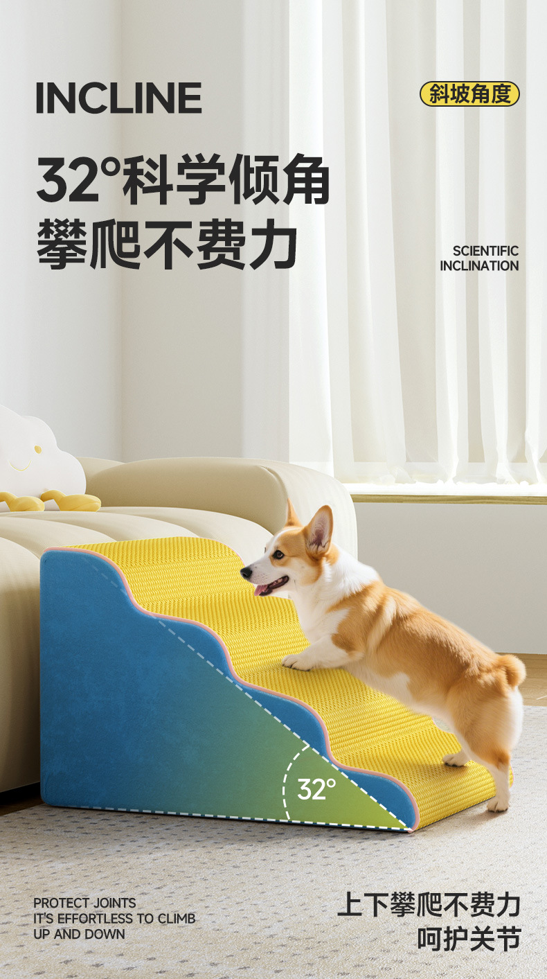 厂家供应宠物楼梯斜坡楼梯多阶狗狗爬梯异形切割高密度宠物爬梯